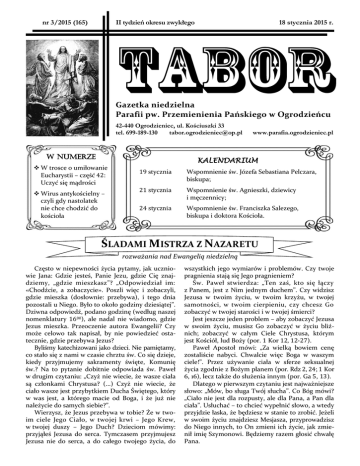 nr 3/2015 (165) II tydzień okresu zwykłego 18 stycznia 2015 r. Gazetka niedzielna Parafii pw. Przemienienia Pańskiego w Ogrodzieńcu 42-440 Ogrodzieniec, ul. Kościuszki 33 tel. 699-189-130 [email protected] W numerze W trosce o umiłowanie Eucharystii – część 42: Uczyć się mądrości Wirus antykościelny – czyli gdy nastolatek nie chce chodzić do kościoła www.parafia.ogrodzieniec.pl KALENDARIUM 19 stycznia Wspomnienie św. Józefa Sebastiana Pelczara, biskupa; 21 stycznia Wspomnienie św. Agnieszki, dziewicy i męczennicy; 24 stycznia Wspomnienie św. Franciszka Salezego, biskupa i doktora Kościoła. ŚLADAMI MISTRZA Z NAZARETU rozważania nad Ewangelią niedzielną Często w niepewności życia pytamy, jak uczniowie Jana: Gdzie jesteś, Panie Jezu, gdzie Cię znajdziemy, „gdzie mieszkasz”? „Odpowiedział im: «Chodźcie, a zobaczycie». Poszli więc i zobaczyli, gdzie mieszka (dosłownie: przebywa), i tego dnia pozostali u Niego. Było to około godziny dziesiątej”. Dziwna odpowiedź, podano godzinę (według naszej nomenklatury 1600), ale nadal nie wiadomo, gdzie Jezus mieszka. Przeoczenie autora Ewangelii? Czy może celowo tak napisał, by nie powiedzieć ostatecznie, gdzie przebywa Jezus? Byliśmy katechizowani jako dzieci. Nie pamiętamy, co stało się z nami w czasie chrztu św. Co się dzieje, kiedy przyjmujemy sakramenty święte, Komunię św.? Na to pytanie dobitnie odpowiada św. Paweł w drugim czytaniu: „Czyż nie wiecie, że wasze ciała są członkami Chrystusa? (...) Czyż nie wiecie, że ciało wasze jest przybytkiem Ducha Świętego, który w was jest, a którego macie od Boga, i że już nie należycie do samych siebie?”. Wierzysz, że Jezus przebywa w tobie? Że w twoim ciele Jego Ciało, w twojej krwi – Jego Krew, w twojej duszy – Jego Duch? Dzieciom mówimy: przyjąłeś Jezusa do serca. Tymczasem przyjmujesz Jezusa nie do serca, a do całego twojego życia, do wszystkich jego wymiarów i problemów. Czy twoje pragnienia stają się Jego pragnieniem? Św. Paweł stwierdza: „Ten zaś, kto się łączy z Panem, jest z Nim jednym duchem”. Czy widzisz Jezusa w twoim życiu, w twoim krzyżu, w twojej samotności, w twoim cierpieniu, czy chcesz Go zobaczyć w twojej starości i w twojej śmierci? Jest jeszcze jeden problem – aby zobaczyć Jezusa w swoim życiu, musisz Go zobaczyć w życiu bliźnich; zobaczyć w całym Ciele Chrystusa, którym jest Kościół, lud Boży (por. 1 Kor 12, 12-27). Paweł Apostoł mówi: „Za wielką bowiem cenę zostaliście nabyci. Chwalcie więc Boga w waszym ciele!”. Przez używanie ciała w sferze seksualnej życia zgodnie z Bożym planem (por. Rdz 2, 24; 1 Kor 6, 16), lecz także do służenia innym (por. Ga 5, 13). Dlatego w pierwszym czytaniu jest najważniejsze słowo: „Mów, bo sługa Twój słucha”. Co Bóg mówi? „Ciało nie jest dla rozpusty, ale dla Pana, a Pan dla ciała”. Usłuchać – to chcieć wypełnić słowo, a wtedy przyjdzie łaska, że będziesz w stanie to zrobić. Jeżeli w swoim życiu znajdziesz Mesjasza, przyprowadzisz do Niego innych, to On zmieni ich życie, jak zmienił imię Szymonowi. Będziemy razem głosić chwałę Pana. W TROSCE O UMIŁOWANIE EUCHARYSTII Część 42 Uczyć się mądrości P ewna 30-letnia kobieta posiadała duże zdolności praktyczne: dobrze gotowała, szyła, haftowała, potrafiła robić zastrzyki. Miała też zdolności artystyczne. Jednak przy całym tym bogactwie Bożych darów w życiu wcale nie była szczęśliwa, gdyż raz po raz popełnia poważne błędy, których konsekwencje były dla niej i dla innych bolesne, i z trudem się z nich wydobywa. Za wszelką cenę wzbrania się jednak przed wejściem na drogę ewangelicznej prawdy. Zapytana, co obecnie czyta, odpowiedziała szczerze: „Książka jest moim największym wrogiem. Jedyna rzecz, której całym sercem nie cierpię, to czytanie książek”. Powiedziała w tych dwu zdaniach wszystko. Ona nigdy nie ceniła mądrości i nie chciała się jej uczyć. Prawdopodobnie do końca życia popełni jeszcze szereg dalszych błędów i tak ona, jak i inni z jej powodu wyleją wiele łez. Po mądrość jednak nie sięgnie. Kobieta ta wcale nie jest wyjątkiem wśród wielu ludzi, z jakimi mamy do czynienia. Dziś zwolenników czytania cennej książki jest stosunkowo niewielu. Jeszcze kolorowe pisma plotkarskie to tak, ale książki, dzięki którym można doskonalić mądrość, nie mają zbyt wielu czytelników. Nawet ci, którzy je kupują, nie zawsze do nich zaglądają. Rzecz jasna, z góry trzeba przyjąć, że nie wszyscy ludzie zechcą uczyć się mądrości i nawet największe nasze zabiegi nie zdołają ich do tego zachęcić. Do nich należy między innymi wspomniana kobieta, ale też nie wszystkich można prowadzić w głąb tajemnicy liturgii mszalnej. Tym jednak, którzy cenią mądrość i chcą się jej uczyć, warto ukazać związek ich pragnień z uczestnictwem w Uczcie samego Boga. Wtedy każde uczestnictwo będzie ubogaceniem ich mądrości, a odchodząc z tego świata będą dziękować Bogu za każdą godzinę spędzoną przy ołtarzu, gdzie systematycznie zdobywali prawdziwą mądrość serca. Dzisiejszy człowiek po prostu nie chce się uczyć mądrości. Czasem można spotkać łowców wiedzy, by przy jej pomocy zrobić karierę lub błyszczeć wśród innych, ale poszukiwaczy mądrości jest niewielu. Wiedza i mądrość to nie to samo! Trzeba nam sobie z tego zdać sprawę, bo jednym z elementów decydujących o właściwym podejściu do Mszy świętej jest pragnienie zdobycia mądrości. Liturgia słowa to wielka lekcja mądrości i w pełni potrafi z niej korzystać jedynie ten, komu zależy na doskonaleniu mądrości. Kto uważa, że już nie musi się niczego uczyć, że zjadł wszystkie rozumy, będzie w czasie czytań Pisma Świętego i kazania albo się nudził, albo krytykował to, co słyszy. On bowiem już nie chłonie, lecz sam jest miarą ws
