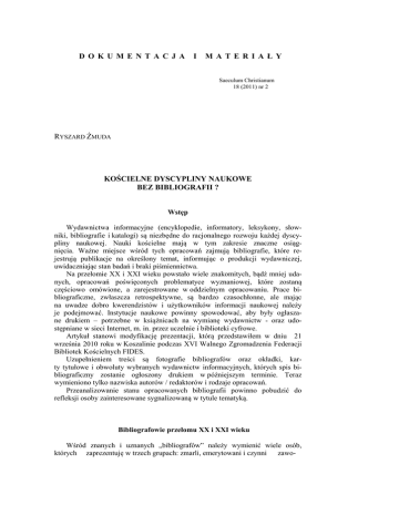 dokumentacjaimateria ł y kościelne dyscypliny naukowe bez