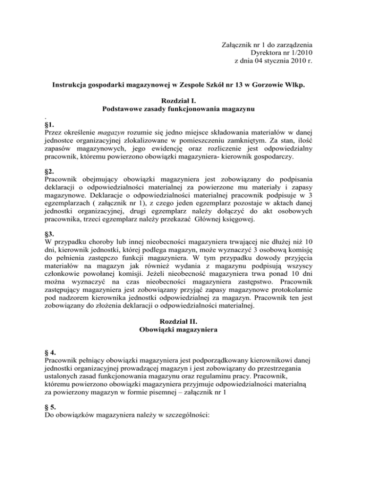Instrukcja gospodarki magazynowej w Zespole Szkół nr 13