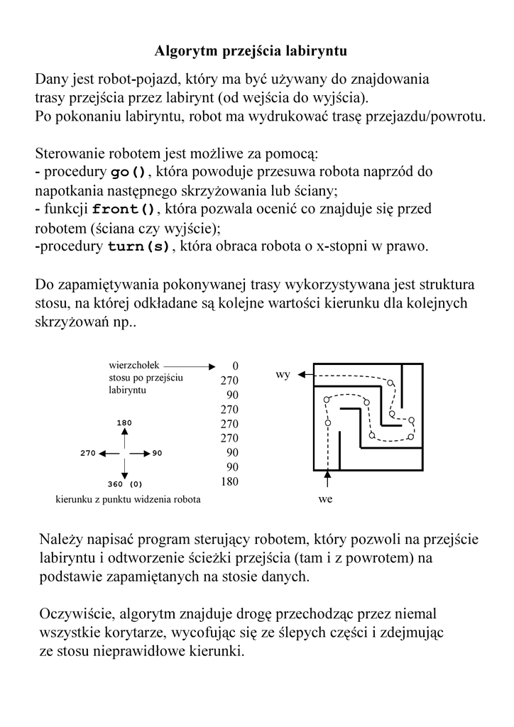 Algorytm przejścia labiryntu Dany jest robot