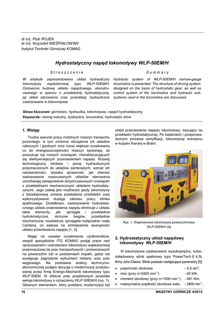 Hydrostatyczny napęd lokomotywy WLP-50EM/H