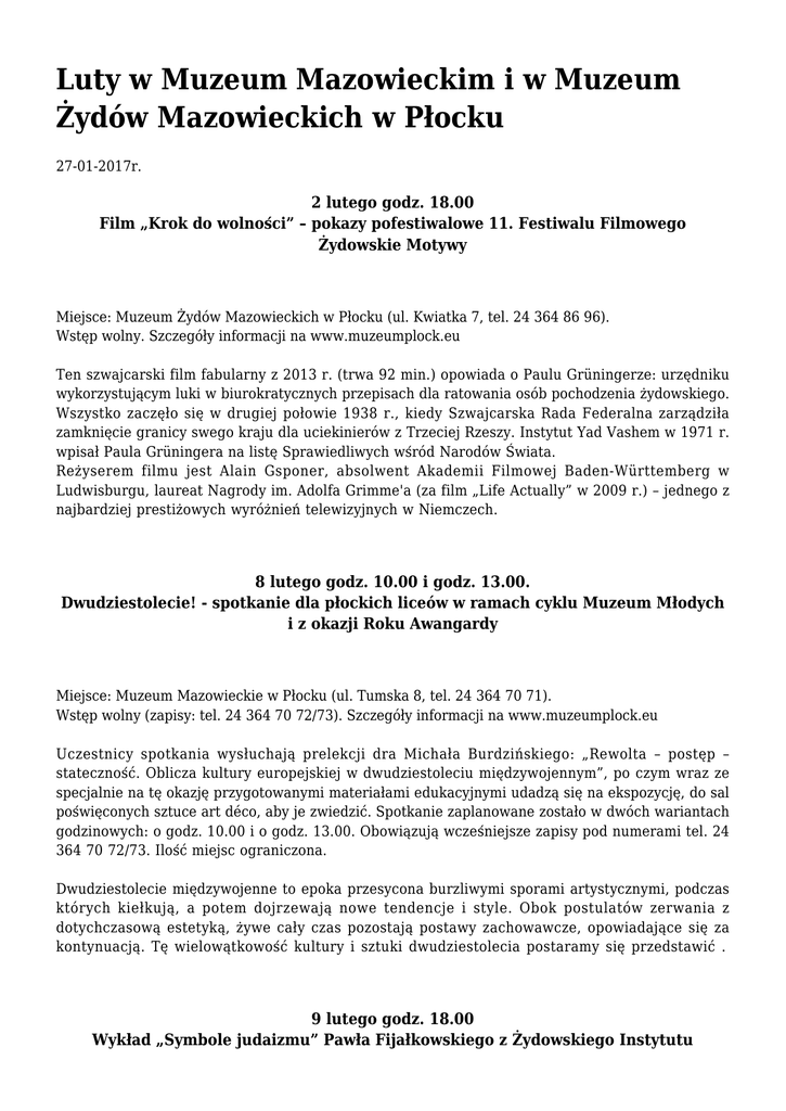 Luty w Muzeum Mazowieckim i w Muzeum Żydów Mazowieckich w