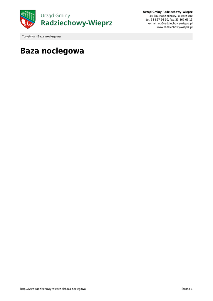 Urząd Gminy Radziechowy-Wieprz 34-381 Radziechowy, Wieprz 700 tel. 33 867 66 10, fax. 33 867 66 13 e-mail: [email protected] www.radziechowy-wieprz.pl Turystyka › Baza noclegowa Baza noclegowa http://www.radziechowy-wieprz.pl/baza-noclegowa Strona 1
