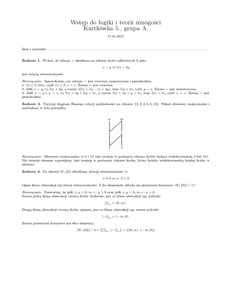 Wst¦p do logiki i teorii mnogo±ci Kartkówka 5., grupa A.