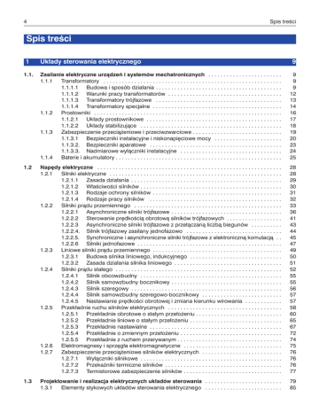 4 Spis treÊci Spis treÊci 1 Uk∏ady sterowania elektrycznego 9 1.1. Zasilanie elektryczne urzàdzeƒ i systemów mechatronicznych . . . . . . . . . . . . . . . . . . . . . . . . 1.1.1 Transformatory . . . . . . . . . . . . . . . . . . . . . . . . . . . . . . . . . . . . . . . . . . . . . . . . . . . . . . . . . . 1.1.1.1 Budowa i sposób dzia∏ania . . . . . . . . . . . . . . . . . . . . . . . . . . . . . . . . . . . . . . . . . 1.1.1.2 Warunki pracy transformatorów . . . . . . . . . . . . . . . . . . . . . . . . . . . . . . . . . . . . . 1.1.1.3 Transformatory trójfazowe . . . . . . . . . . . . . . . . . . . . . . . . . . . . . . . . . . . . . . . . . 1.1.1.4 Transformatory specjalne . . . . . . . . . . . . . . . . . . . . . . . . . . . . . . . . . . . . . . . . . . 1.1.2 Prostowniki . . . . . . . . . . . . . . . . . . . . . . . . . . . . . . . . . . . . . . . . . . . . . . . . . . . . . . . . . . . . . 1.1.2.1 Uk∏ady prostownikowe . . . . . . . . . . . . . . . . . . . . . . . . . . . . . . . . . . . . . . . . . . . . 1.1.2.2 Uk∏ady stabilizujàce . . . . . . . . . . . . . . . . . . . . . . . . . . . . . . . . . . . . . . . . . . . . . . 1.1.3 Zabezpieczenie przecià˝eniowe i przeciwzwarciowe . . . . . . . . . . . . . . . . . . . . . . . . . . . . . 1.1.3.1 Bezpieczniki instalacyjne i niskonapi´ciowe mocy . . . . . . . . . . . . . . . . . . . . . . 1.1.3.2. Bezpieczniki aparatowe . . . . . . . . . . . . . . . . . . . . . . . . . . . . . . . . . . . . . . . . . . . 1.1.3.3. Nadmiarowe wy∏àczniki instalacyjne . . . . . . . . . . . . . . . . . . . . . . . . . . . . . . . . . 1.1.4 Baterie i akumulatory . . . . . . . . . . . . . . . . . . . . . . . . . . . . . . . . . . . . . . . . . . . . . . . . . . . . . . 9 9 9 12 13 14 16 17 18 19 20 23 24 25 1.2 Nap´dy elektryczne . . . . . . . . . . . . . . . . . . . . . . . . . . . . . . . . . . . . . . . . . . . . . . . . . . . . . . . . . . . . 1.2.1 Silniki elektryczne . . . . . . . . . . . . . . . . . . . . . . . . . . . . . . . . . . . . . . . . . . . . . . . . . . . . . . . . 1.2.1.1 Zasada dzia∏ania . . . . . . . . . . . . . . . . . . . . . . . . . . . . . . . . . . . . . . . . . . . . . . . . . 1.2.1.2 W∏aÊciwoÊci silników . . . . . . . . . . . . . . . . . . . . . . . . . . . . . . . . . . . . . . . . . . . . . . 1.2.1.3 Rodzaje ochrony silników . . . . . . . . . . . . . . . . . . . . . . . . . . . . . . . . . . . . . . . . . . 1.2.1.4 Rodzaje pracy silników . . . . . . . . . . . . . . . . . . . . . . . . . . . . . . . . . . . . . . . . . . . 1.2.2 Silniki pràdu przemiennego . . . . . . . . . . . . . . . . . . . . . . . . . . . . . . . . . . . . . . . . . . . . . . . . 1.2.2.1 Asynchroniczne silniki trójfazowe . . . . . . . . . . . . . . . . . . . . . . . . . . . . . . . . . . . . 1.2.2.2 Sterowanie pr´dkoÊcià obrotowà silników trójfazowych . . . . . . . . . . . . . . . . . . 1.2.2.3 Asynchroniczne silniki trójfazowe z prze∏àczanà liczbà biegunów . . . . . . . . . . 1.2.2.4. Silnik trójfazowy zasilany jednofazowo . . . . . . . . . . . . . . . . . . . . . . . . . . . . . . . 1.2.2.5. Synchroniczne i asynchroniczne silniki trójfazowe z elektronicznà komutacjà . . 1.2.2.6 Silniki jednofazowe . . . . . . . . . . . . . . . . . . . . . . . . . . . . . . . . . . . . . . . . . . . . . . . 1.2.3 Liniowe silniki pràdu przemiennego . . . . . . . . . . . . . . . . . . . . . . . . . . . . . . . . . . . . . . . . . . 1.2.3.1 Budowa silnika liniowego, indukcyjnego . . . . . . . . . . . . . . . . . . . . . . . . . . . . . . 1.2.3.2 Zasada dzia∏ania silnika liniowego . . . . . . . . . . . . . . . . . . . . . . . . . . . . . . . . . . . 1.2.4 Silniki pràdu sta∏ego . . . . . . . . . . . . . . . . . . . . . . . . . . . . . . . . . . . . . . . . . . . . . . . . . . . . . . 1.2.4.1 Silnik obcowzbudny . . . . . . . . . . . . . . . . . . . . . . . . . . . . . . . . . . . . . . . . . . . . . . 1.2.4.2 Silnik samowzbudny bocznikowy . . . . . . . . . . . . . . . . . . . . . . . . . . . . . . . . . . . . 1.2.4.3 Silnik szeregowy . . . . . . . . . . . . . . . . . . . . . . . . . . . . . . . . . . . . . . . . . . . . . . . . . 1.2.4.4 Silnik samowzbudny szeregowo-bocznikowy . . . . . . . . . . . . . . . . . . . . . . . . . . 1.2.4.5 Nastawianie pr´dkoÊci obrotowej i zmiana kierunku wirowania . . . . . . . . . . . . 1.2.5 Przek∏adnie ruchu silników elektrycznych . . . . . . . . . . . . . . . . . . . . . . . . . . . . . . . . . . . . . 1.2.5.1 Przek∏adnie obrotowe o sta∏ym prze∏o˝eniu . . . . . . . . . . . . . . . . . . . . . . . . . . . . 1.2.5.2 Przek∏adnie liniowe o sta∏ym prze∏o˝eniu . . . . . . . . . . . . . . . . . . . . . . . . . . . . . . 1.2.5.3 Przek∏adnie nastawialne . . . . . . . . . . . . . . . . . . . . . . . . . . . . . . . . . . . . . . . . . . . 1.2.5.4 Przek∏adnie o zmiennym prze∏o˝eniu . . . . . . . . . . . . . . . . . . . . . . . . . . . . . . . . . 1.2.5.5 Przek∏adnie z ruchem przerywanym . . . . . . . . . . . . . . . . . . . . . . . . . . . . . . . . . . 1.2.6 Elektromagnesy i sprz´g∏a elektromagnetyczne . . . . . . . . . . . . . . . . . . . . . . . . . . . . . . . . 1.2.7 Zabezpieczenie przecià˝eniowe silników elektrycznych . . . . . . . . . . . . . . . . . . . . . . . . . . 1.2.7.1 Wy∏àczniki silnikowe . . . . . . . . . . . . . . . . . . . . . . . . . . . . . . . . . . . . . . . . . . . . . . 1.2.7.2 Przekaêniki termiczne silników . . . . . . . . . . . . . . . . . . . . . . . . . . . . . . . . . . . . . . 1.2.7.3 Termistorowe zabezpieczenie silników . . . . . . . . . . . . . . . . . . . . . . . . . . . . . . . . 28 28 29 30 31 32 33 36 41 43 44 45 47 49 50 51 52 55 55 56 57 57 58 60 65 67 72 74 75 76 76 76 77 1.3 Projektowanie i realizacja elektrycznych uk∏adów sterowania . . . . . . . . . . . . . . . . . . . . . . . . . 1.3.1 Elementy stykowych uk∏adów sterowania elektrycznego . . . . . . . . . . . . . . . . . . . . . . . . . 79 85 Spis treÊci 1.3.2 1.3
