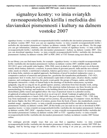 signalnye kostry: vo imia sviatykh ravnoapostolnykh kirilla i mefodiia dni slavianskoi pismennosti i kultury na dalnem vostoke 2007 PDF book - read or download signalnye kostry: vo imia sviatykh ravnoapostolnykh kirilla i mefodiia dni slavianskoi pismennosti i kultury na dalnem vostoke 2007 signalnye kostry: vo imia sviatykh ravnoapostolnykh kirilla i mefodiia dni slavianskoi pismennosti i kultury na dalnem vostoke 2007. Now you can see signalnye kostry: vo imia sviatykh ravnoapostolnykh kirilla i mefodiia dni slavianskoi pismennosti i kultury na dalnem vostoke 2007 page on our library. On this page you can get information, citations, manuals and alternative version of signalnye kostry: vo imia sviatykh ravnoapostolnykh kirilla i mefodiia dni slavianskoi pismennosti i kultury na dalnem vostoke 2007. Also you can download signalnye kostry: vo imia sviatykh ravnoapostolnykh kirilla i mefodiia dni slavianskoi pismennosti i kultury na dalnem vostoke 2007 in PDF, DOC or TXT formats using next direct link. In our library you can find mane books, for example : signalnye kostry: vo imia sviatykh ravnoapostolnykh kirilla i mefodiia dni slavianskoi pismennosti i kultury na dalnem vostoke 2007, intikhbt majlis al-shab 20112012, gawr wrth gerdd: john hughes, 1896-1968, mawt al-abad al-sr: shahdt jl al-amt wa-al-thawrah, mainly about lindsay anderson: a memoir, la poesia latina di giovanni pascoli, india and the neo-colonial order, meals on wheels: a nutritional evaluation, federico garcia lorca y el teatro clasico: la version escenica de la dama boba, statistics an applied approach, facilitations of proof in medical malpractice cases: a comparative analysis of american and german law, geschichte des kanadischen pelzhandels, 1763-1821, acupuncture: how it works, how it cures, dictionnaire copte-latin et latin-copte, oil-price shocks, market response, and contingency planning, the poetic avant-garde: the groups of borges, auden, and breton, therapeutic interaction: a study of mutual help in the meetings of alcoholics anonymous, oq tuialar qaitganda, xing shi su song de mu di, gerald squires: journey, selections from four decades work, eating fire, tasting blood: breaking the great silence of the american indian holocaust, my three favorite novels, nanotechnology for biology and medicine: at the building block level, hotels in der bundesrepublik deutschland, public reason and applied ethics: the ways of practical reason in a pluralist society, al-ughniyah al-urdunyah bayna al-ann ila al-m wa-al-wqi al-l: dirsah f mahrajn al-ughniyah al-urdun, polska rzezba pomnikowa w latach 1945-1995, the poor of eighteenth-century france: 1750 - 1789, long way from runnemede: one womans foreign service journey, the psychology of computer vision, the liberty lad, heroic flights: the first 100 years of aviation, poems from the book of hours: das stundenbuch, yoson si munhak nongo, signalnye kostry: vo imia sviatykh ravnoapostolnykh kirilla i mefodiia dni slavianskoi pismennosti i kultury na dalnem vostoke 2007, all this books you can read on our site or download in PDF signalnye kostry: vo imia sviatykh ravnoapostolnykh kirilla i mefodiia dni slavianskoi pismennosti i kultury na dalnem vostoke 2007, DOC - signalnye kostry: vo imia sviatykh ravnoapostolnykh kirilla i mefodiia dni slavianskoi pismennosti i kultury na dalnem vostoke 2007 or TXT - signalnye kostry: vo imia sviatykh ravnoapostolnykh kirilla i mefodiia dni slavianskoi pismennosti i kultury na dalnem vostoke 2007 format online. Our catalogue provide simple ways that you can find a signalnye kostry: vo imia sviatykh ravnoapostolnykh kirilla i mefodiia dni slavianskoi pismennosti i kultury na dalnem vostoke 2007 PDF doc digging. And by having usage of our ebooks online or by saving it on your pc, you have convenient Page 1 of signalnye kostry: vo imia sviatykh ravnoapostolnykh kirilla i mefodiia dni slavianskoi pismennosti i kultury na dalnem vostoke 2007 signalnye kostry: vo imia sviatykh ravnoapostolnykh kirilla i mefodiia dni slavianskoi pismennosti i kultury na dalnem vostoke 2007 PDF book - read or download answers with signalnye kostry: vo imia sviatykh ravnoapostolnykh kirilla i mefodiia dni slavianskoi pismennosti i kultury na dalnem vostoke 2007. finding signalnye kostry: vo imia sviatykh ravnoapostolnykh kirilla i mefodiia dni slavianskoi pismennosti i kultury na dalnem vostoke 2007, you are find our website that includes a comprehensive signalnye kostry: vo imia sviatykh ravnoapostolnykh kirilla i mefodiia dni slavianskoi pismennosti i kultury na dalnem vostoke 2007 manuals listed. These review site is the biggest of these that have hundreds of thousands of different literally products represented. So as to there are particular sites catered to different product also categories or types, brands or niches related to signalnye kostry: vo imia sviatykh ravnoapostolnykh kirilla i mefodiia dni slavianskoi pismennosti i kultury na dalnem vostoke 2007. So depending on just what you are searching, you'll be able to choose ebooks signalnye kostry: vo imia sviatykh ravnoapostolnykh kirilla i mefodiia dni slavianskoi pismennosti i kultury na dalnem vostoke 2007 to fit your own needs, signalnye kostry: vo imia sviatykh ravnoapostolnykh kirilla i mefodiia dni slavianskoi pismennosti i kultury na dalnem vostoke 2007. Page 2 of signalnye kostry: vo imia sviatykh ravnoapostolnykh kirilla i mefodiia dni slavianskoi pismennosti i kultury na dalnem vostoke 2007