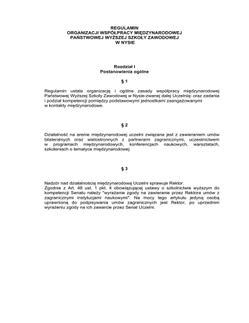 Regulamin ustala organizację i ogólne zasady współpracy międzynarodowej