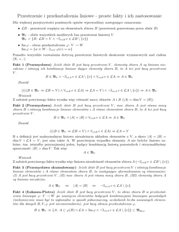 Przestrzenie i przekształcenia liniowe - proste fakty i ich