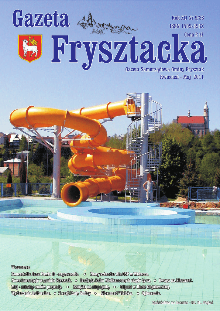 Gazeta Rok XII Nr 9/88 ISSN 1509-393X Cena 2 z³ Frysztacka Gazeta Samorz¹dowa Gminy Frysztak Kwiecieñ - Maj 2011 Koncert dla Jana Paw³a II - zaproszenie. Nowy sztandar dla OSP w Widaczu. Nowe inwestycje w gminie Frysztak. Tradycja Palm Wielkanocnych ci¹gle ¿ywa. Uwaga na kleszcze!. Maj - miesi¹c cudów przyrody. Ksi¹¿ki na niepogodê. Odpust w Hucie Gogo³owskiej. Wydarzenia kulturalne. Z sesji Rady Gminy. G³os znad Wis³oka. Og³oszenia. Zje¿d¿alnia na basenie - fot. M.. Piêkoœ 2 GAZETA FRYSZTACKA STRAŻACKIE ŚWIĘTO 3 maja br. obchodzono w gminie Frysztak święto wszystkich Strażaków. W Kościele Parafialnym we Frysztaku odprawiona została uroczysta Msza Św. Następnie wszyscy Strażacy oraz ich sympatycy przemaszerowali na Plac Św. Floriana, gdzie przy pomniku swego patrona złożyli wiązankę kwiatów. Podczas uroczystości wystąpiła Gminna Orkiestra Strażacka. Tegoroczne obchody miały szczególną oprawę, gdyż swój nowy sztandar święciła jednostka OSP z Widacza. Na odrestaurowanym Placu Św. Floriana zastępy strażaków, poczty sztandarowe i wozy bojowe prezentowały się bardzo okazale. tekst: empe fot. Joanna Pasek Msza w intencji Strażaków. Poświęcenie sztandaru OSP Widacz. Przemarsz Strażaków. Pomnik Św. Floriana Wystąpienie Wójta Gminy Frysztak. 3 GAZETA FRYSZTACKA Kolejna sesja Rady Gminy Frysztak planowana jest na koniec maja bieżącego roku, na którą serdecznie zapraszamy. Szczegółowe informacje dotyczące sesji Rady Gminy Frysztak uzyskać można w Urzędzie Gminy Frysztak w p. 29 oraz pod adresem internetowym www.frysztak.pl. Od ostatniego wydania Gazety Frysztackiej odbyło się trzy sesje Rady Gminy Frysztak. Miały one miejsce 29 marca, 14 kwietnia i 10 maja 2011 r. Pierwsza z nich była poświęcona sprawom profilaktyki i rozwiązywania problemów alkoholowych oraz sprawom przeciwdziałania narkomani na terenie gminy Frysztak. Przedstawione zostały przedmiotowe analizy wspomnianych problemów oraz podjęte zostały uchwały dotyczące programów profilaktyki i przeciwdziałania tym zjawiskom społecznym. Rada gminy przyjęła także uchwałę dotyczącą wyznaczenia radnego na przedstawiciela gminy w Zgromadzeniu Związku Komunalnego „Wisłok”, którym został radny Janusz Machowski. Rada uchwaliła także nowy statut Gminnego Ośrodka Pomocy Społecznej we Frysztaku, podjęto uchwałę ustalającą tryb i sposób powoływania i odwoływania członków zespołu interdyscyplinarnego, mającego zajmować się sprawami przemocy w rodzinie. Radni wyrazili także zgodę na realizację w 2011r. projektu systemowego „Czas na aktywność w gminie Frysztak” wspomagającego osoby bezrobotne, które jednocześnie korzystają z pomocy społecznej. Sesja z 14 kwietnia była sesją wyjazdową, mającą na celu zapoznanie się radnych i władz gminy ze stanem infrastruktury gminnej oraz potrzebami remontowo – budowlanymi. Głównymi punktami trzeciej sesji z 10 maja br. były analizy bezpieczeństwa publicznego i ochrony przeciwpożarowej na terenie gminy Frysztak za 2010 r. Wspomniane analizy przedstawili mł. insp. Andrzej Wędrychowicz – Komendant Powiatowy Policji w Strzyżowie oraz bryg. Piotr Rędziniak – Komendant Powiatowy Państwowej Straży Pożarnej w Strzyżowie. Z powyższych analiz można było wysnuć wniosek, iż stan bezpieczeństwa publicznego i ochrony przeciwpożarowej utrzymuje się na podobnym poziomie jak w latach poprzednich, za to stan przygotowania jednostek Państwowej Straży Pożarnej i Ochotniczych Straży Pożarnych do działań przeciwpowodziowych znacznie wzrósł, gdyż po ubiegłorocznych powodziach jednostki te otrzymały zwiększone środki finansowe na doposażenie w specjalistyczny sprzęt przeciwpowodziowy. Poza powyższymi analizami zostały także podjęte uchwały dotyczące m.in. ustalenia opłat za świadczenia przedszkoli prowadzonych przez Gminę Frysztak, dokonano zmian w Statucie Gminnego Ośrodka Kultury we Frysztaku oraz podjęto szereg uchwał dotyczących bieżącej realizacji budżetu. Wybory so³tysów i rad so³eckich W bieżącym roku kalendarzowym dobiegły końca kadencje władz sołectw naszej gminy. Na mocy uchwały Rady Gminy Frysztak wybory sołtysów i członków rad sołeckich odbyły się 27 marca i 10 kwietnia 2011r. W najważniejszym organie przedstawicielskim sołectw jakim są sołtysi jedyną zmianą jaka zaszła był wybór na sołtysa sołectwa Widacz Pana Jana Garncarskiego, któremu serdecznie gratulujemy wyboru a ustępującemu sołtysowi – Pani Annie Frączek dziękujemy za trud pracy na rzecz sołectwa. Poniżej zamieszczamy imiona i nazwiska nowo wybranych sołtysów poszczególnych sołectw z terenu gminy Frysztak. Chytrówka – Pani Kowalczyk Iwona Cieszyna – Pan Gałuszka Jerzy Frysztak – Pan Czernicki Ryszard Glinik Dolny – Pan Kwiatek Stanisław Glinik Górny – Pan Giera Edward Glinik Średni – Pan Kowalski Janusz Gogołów – Pan Kuternoga Mieczysław Huta Gogołowska – P. Sokołowski Józef Kobyle – Pan Drygaś Kazimierz Lubla – Pan Sułkowski Stanisław Pułanki – Pan Błoniarz Eugeniusz Stępina – Pani Jantoń Halina Twierdza – Pan Śliwa Jan Widacz – Pan Garncarski Jan Przygotował Pracownik ds.obsługi rady gminy 4 GAZETA FRYSZTACKA Dzień Dziecka na świecie - jak świętują !!! Święto dzieci obchodzone jest już od pół wieku. Celebruje się go niemal na całej kuli ziemskiej. Jego inicjatorem była organizacja zwana The International Union for Protection of Childhood, której celem było zapewnienie bezpieczeństwa dzieciom z całego świata. Nie we wszystkich jednak krajach świata obchodzone jest tego samego dnia. W Polsce, Czechach, Słowacji, Rosji oraz innych krajach bałtyckich święto przypada dnia 1 czerwca. Większość państw przyjęło jednak sugestię Organizacji Narodów Zjednoczonych i obchodzi swój Dzień Dziecka dnia 20 listopada. Jest to rocznica uchwalenia Deklaracji Praw Dziecka