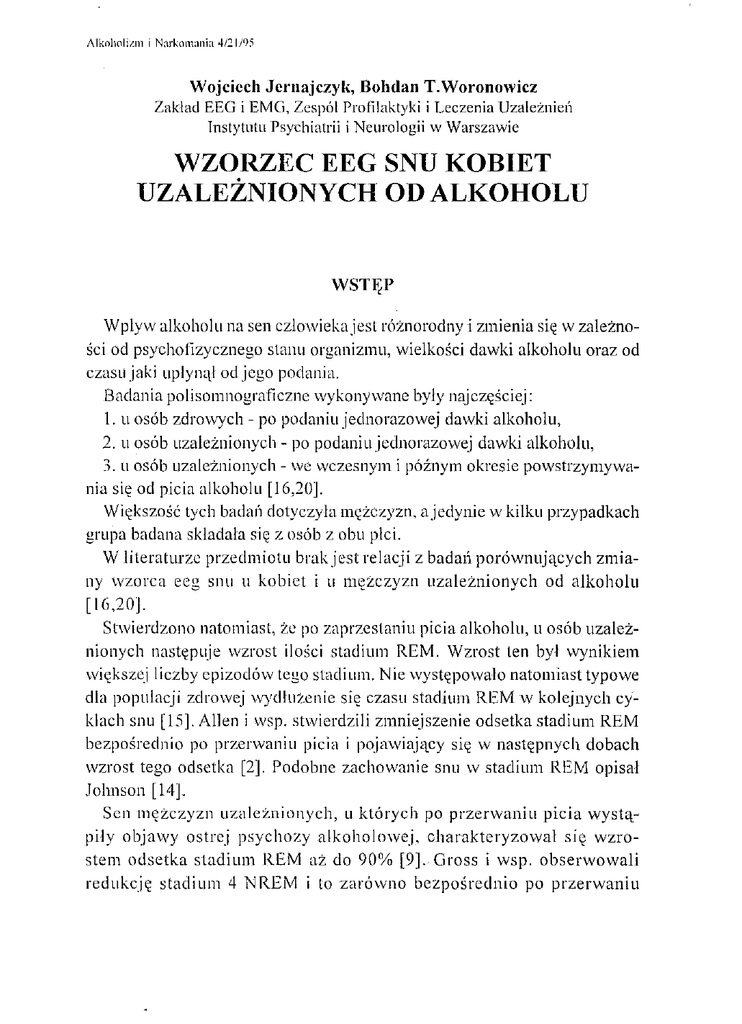 Ekiert I-l., .Iernajczyk W. (199 I): EEG sleep paltern in aleoholics with