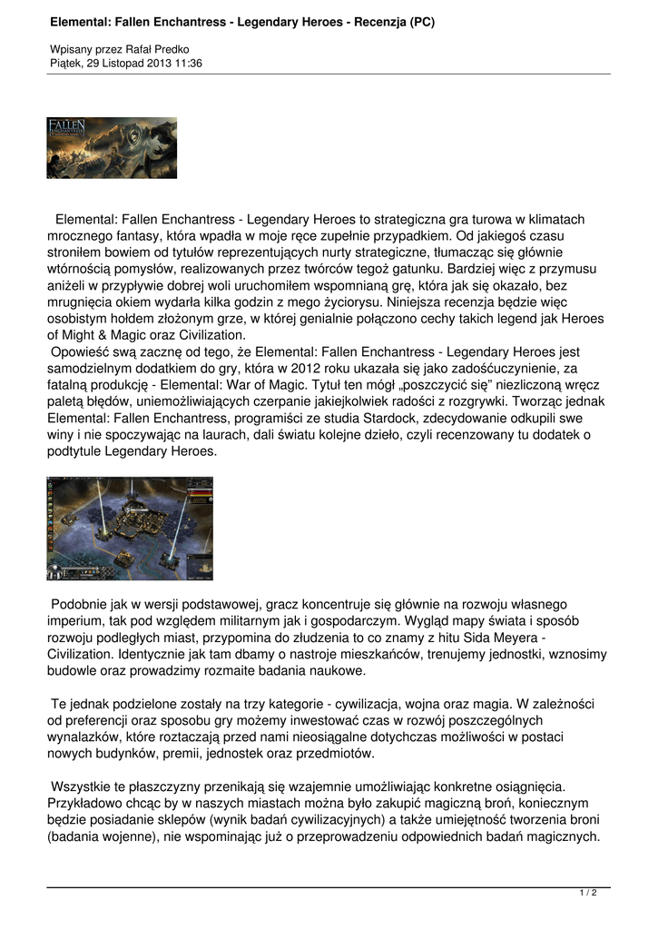 Opowieść swą zacznę od tego, że Elemental: Fallen Enchantress - Legendary Heroes jest