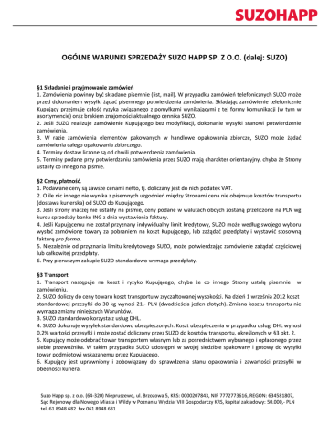 OGÓLNE WARUNKI SPRZEDAŻY SUZO HAPP SP. Z O.O. (dalej