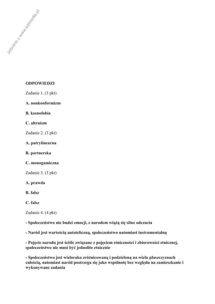 ODPOWIEDZI Zadanie 1. (3 pkt) A. nonkonformizm B. ksenofobia C