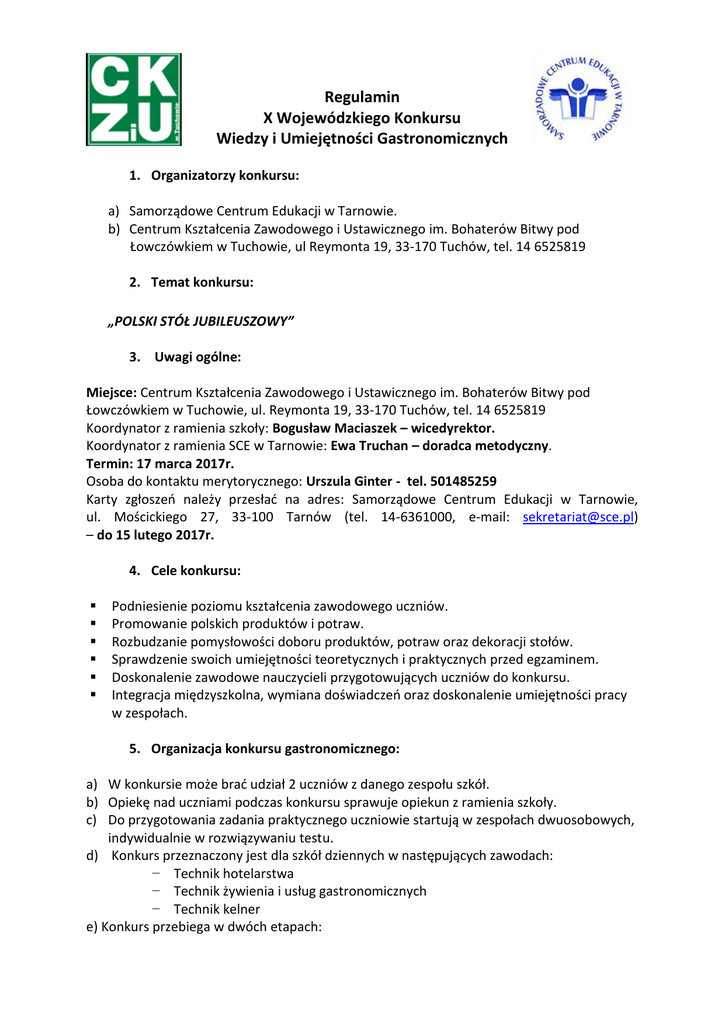 Regulamin konkursu - Samorządowe Centrum Edukacji w Tarnowie