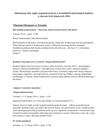 Informacje dot. zajęć organizowanych w toruńskich instytucjach kultury
