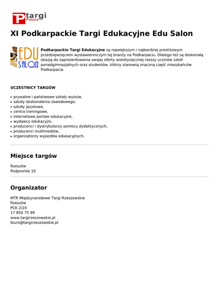 XI Podkarpackie Targi Edukacyjne Edu Salon