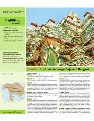IJH53)/0+)17&15<+2<=*7&)?67=/)17 "5G)H&KLMLLMIKLN&=&"7(;=715 )/ 6999 PLN =7&);)?@ AB:BCD&E> Warszawy F)=076&=7G2H5&15<+2<=*+>& !"#$%& $'"()'*#+!,'*#-./0 $-1'"* 2!"+! 0$$ #!3&$* !3-0-1'*45!-*6-&*$*6!7* 8-$*9-: !"1!, $'"()'*)!;<:&$*=! >&-&/ 7-(:* !*3)'?'*41!$ O17(70H)1702&H2(8+05& ,(=2,()17/=20+7&15<+2<=*+>& 01.11., 29.11., 10.01., 07.02.14. :2(8+05&()=,)<=@<+7&15<+2<=*+>& 01.11, 15.11., 29.11., 13.12., 10.01., 24.01., 07.02., 21.02., 07.03., 21.03.14. !"!#$%& :(7;7&15<+2<=*+>& BIRMA TAJLANDIA Cha Am KAMBODŻA Zatoka Tajlandzka Chumphon Phuket Krabi W)/&15<+2<=*+>&_W:IK`K[& F()3(78&15<+2<=*+> LM&/=+2T>& "7(;=717&U&FV.*2H A3)'+-:*(!7-+-:'7*?)!3:'3-1<7*)*@!3()!1<* !*A5/&':B Z5/+!+- >&-3 D*!*;.<()?)I?<*;$!.<*7!37/3*(#3-1!0)- -*)*Z!33!3<*1'* @.-()'?5B*@$'?)-3'7*C!&/+:!:<1 $'*7-,+$1-LM*(&-3)<(:! $!*)*&-+!?"$* 13!)*)*#3)'0(:!1$' $'7*:3!0<?<" <?5*:!H?F1*2!"+! 0$$B*NL $!0! $'OB IM&/=+2T>& FV.*2H&U&W(7?+&X)*M&LYK&*8Z A3)<+-:*0-*2!"+! 0$$B*23! (C'3*0-*5-:'+/* !*43!;$*$*)!&1!:'3-1! $'B ^M&/=+2T>& 9703*)* G)$'H*3-)#-?) $'7<*-0*)1$'0)! $!*$7#- /"I?'>-*@$'+&$'>-*A!.!E ?/D* $'>0<L*3')<0' ?"$*:!"(&$?5*7- !3?5F1*)*@!:*A53!*4'-*J* !"E 1!, $'"()I*L1$I:< $I*1*2!"+! 0$$*)'*()7!3!>0-1<7*=/00IB*@$'+&$* A!.!?D*($'0)$;!*&3F+F1*0< !(:$$*Z5!&3$*1<;/0-1! !*)-(:!.!*#3)')* &3F+!*8!7%*[D*"!&-*#!.!?*&3F+'1(&$*(./,<.!*0-*XY\]*3B*^;'? $'*#'. $* "'0< $'*C/& ?"'*3'#3')' :!?<" 'B*@!:*A53!*4'-* !:-7$!(:*0-*0 $!* 0)$($'"()'>-*(./,<*"!&-*7$'"(?'D*1*&:F3<7*-0;<1!"I*($%*/3-?)<(:-L?$* 3'+$>$" '*)*/0)$!.'7*:!"(&$'"*3-0)$ <*&3F+'1(&$'"B*NL $!0! $'OB NM&/=+2T>& W(7?+ 43!;$D*"'0 !*)*#-./0 $-1-E:!"+! 0)&$?5*#3-1$ ?"$*(.< $'*)*#3)'E #$%& <?5*&3!"-;3!)F1*$*/ $&!+ <?5*C-37!?"$*(&!+ <?5B*G)$'H*1-+ <* !*-0#-?)< '&*#-*#3)<+-?$'*#-.I?)- <*)*#+!,-1! $'7* !*"'0 '"* )*#$%& $'"()<?5*#+!,*43!;$*J*K- ! >*+/;*7-,+$1-LM*(&-3)<(:! $!* )*1<?$'?)&$*C!&/+:!:<1 '"* !*1<(#%*A5$*A5$B*NL $!0! $'OB het Kamphangp Ayuthaya Bangkok '()*+&,)-./0+)123)&45678.&+&9703*)* Bus [M&/=+2T>& W(7?+&U&9703*)*&X)*M&\]K&*8Z A3)'0*#-./0 $'7*?)!(*1-+ <* !*#+!,-1! $'B*A-*-;$'0)$'*#3)'"!)0* !* (:!?"%*&-+'"-1I*1*P!&5- *6$*25!77!3!:*$* -? !*#-03F,*#-?$I>$'7* 0-*=! >&-&/B*NL $!0! $'D*-;$!0OB YM&/=+2T>& 9703*)* 8! -*0-:3I*A!H(:1-*0-*=! >&-&/B*P!(:%# $'*#3)'"!)0*0-*5-:'+/* !* L $!0! $'D*#-*&:F3<7*3-)#-?) I*A!H(:1-*)1$'0)! $'*(:-+$?<*2!"+! 0$$B* A$'31()'>-*0 $!*1$)<:<*)!#-) !7<*($%*)* !"?$'&!1()<7$*L1$I:< $!7$* ;/00<"(&$7$*7$!(:!B*P!*#-?)I:'&* !"(:!3()!*L1$I:< $*1*=! >&-&/*J* @!:*A-*)*$7#- /"I?I*Q*>/3I*R',I?'>-*=/00<B*A'. !* !)1!*L1$I:< $* :-*@!:*A53!*S':/#- B*P!*:'3' $'*3-)+'>.'>-*&-7#+'&(/*L1$I:< '>-* N-&B*TUBUUU*7VO*) !"0/"'*($%*:',*1!, <*-L3-0'&*:3!0<?<" '"*7'0<?<E <*-3!)*7!(!,/*:!"(&$'>-D*&:F3<*7!*3F1 $',*1.!L?$1-L?$*+'?) $?)'B* W-;!?)<7<*:!&,'*L1$I:< $%*@!:*23$7$:*-3!)*7!37/3-1I*@!:*=' E ?5!7!;-#5$:B*=/0-1%*:'"*L1$I:< $*)!$ !/>/3-1!.*1*XYUX*3B*&3F+* \M&/=+2T>& 9703*)* S'0 <7*)* !"+'#()<?5*(#-(-;F1* !*#-) ! $'*(:-+$?<*2!"+! 0$$*"'(:* 3'"(*#-*1-0!?5*3)'&$*_' !7D*)1! '"*1*2!"+! 0$$*Z5!-*A53!<!B*`-0)$I* /0!7<*($%*3F1 $',* !* $')!#-7 $! <*3'"(*#-*:)1B*4+- >!?5*J*&! !E .!?5D*&:F3'*0!1 $'"*(:! -1$.<*(<(:'7*&-7/ $&!?<" <*=! >&-&/B* W*1-0<*)-;!?)<M*;%0)$'*7-, !*?-0)$' '*,<?$'*7$'()&!H?F1* 7$!(:!D*>0)$'*#3)'().-LM*1* $'(!7-1$:<*(#-(F;*.I?)<*($%*)* -1-E ?)'( -L?$IB*@*03-0)'*#-13-: '"*)1$'0)$7<*@!:*K3/ *J*L1$I:< $%* S/:3)' &$B*a1$I:< $!*:!*-*;!30)-*?$'&!1'"*$*?5!3!&:'3<(:<?) '"*(<+E 1':?'D*1<;/0-1! !*)-(:!.!*1*Xb]T*3B*$*#3)')*#'1$' *?)!(*#'. $.!* C/& ?"%*&!#+$?<*&3F+'1(&$'"B*NL $!0! $'OB ]M&/=+2T>& 9703*)*&U&B5.HV757&U&W70<V707?.(+&X)*M&NYK&*8Z @*:<7*0 $/*/0!0)I*($%*A!H(:1-*0-*K</::5!<$D*&:F3!*#3)')*#- !0* \UU*+!:*;<.!*(:-+$?I*2!"F1B*A-*03-0)'*)!:3)<7!7<*($%D*;<*)-;!E ?)<M*0!1 <*+': $*#!.!?*&3F+'1(&$*=! >*A!*[ D*&:F3<*3'#3')' :/"'* #1+7/:;20+7& 1<+:;)02&1&:20=>& M przeloty samolotem czarterowym z Warszawy na Phuket i z powrotem M transfery, wycieczki i przejazdy po kraju autokarami M 13 noclegów w hotelach (pokoje !"# $%&'(!)*+!,-./ &$0%1!$!234 M 5!,- %6# 7!&80&.1!,80$(9$%1 M ,8/$"'$! 987&$%! !,-89-#1%1 M +89#:.!,-89-#1! ;$%7 #&$#! !,8)/'86< .0 &.1!,$)8:%1 V7*17Q2()170+2> \!&80%!a!T-#+$! J8&#&9! A*00%// ! M%#0H!X%/8-:!111 5!&80!a!W80&.!,80$(9! bb!')#/#! c!&80%!a!M#&9'8'! V8&9:#-#!! 11q 5!&80!a!T#&0H#&#+*-$! X$d%-!T;#$!!111 5!&80!a!3H#!J1! e8&9!M%#0H! 111 5!&80!a!3H*1,H8&! 3H*1,H8&!3#+#&# 111 ! X%/8-:!! \!&80%!a!TH#8!A8'! TH#8!A8'!X$d%-/$7% 111 ! 38::#9%/! c!&80%!a!PH*'%:! A*,#)#$!! ! X%/8-:!f!A,#!111 ;/,#&$#".!,- .'"#7!:#6/'$%6!#-0H$:%':*-.I!J.*:H#.#K!7#;&#!/:8)$0#! A.6#1*! 8/:#"#! &$/ 0 8&#!;!5L>L!-I!,- % !M$-1#N0 .'C;I!O;$%7 $1.! -*$&.!F;$(:.&$!2#:!PH-#!A-$!A#&,H%:! +*78;#&%6!,87!'8&$%0!QR! ;$%'*I!A;%98!0 #/*!,%"&$"#!8&#!S*&'06<!F;$(:.&$!'-C)%;/'$%6I!P8! ;$%7 #&$*!,- %6# 7!78!T#&0H#&#+*-$I!DF&$#7#&$%K!8+$#74I :-#/#!,-8;#7 $!78!1$%6/08;8F0$!3H#$.#K!+<7(0%6!6%7&(! !/:#-U / .0H!&#! #0H87&$1!;.+- %E*!O#:8'$!V#6)#&7 '$%6I!]7;$%7 $1.!:*:#6! '81,)%'/!F;$(:.&&.!PH-#!M8-81!VH#:!3H#$.#I!PCZ&.1!,8,8"*7&$%1! 78:- %1.!78!,#-'*!&#-878;%98!TH#8!A8'K!97 $%! #';#:%-8;#&$%! &#/:(,$!;!,-8/:.0H!+*&9#)8;#0HI!DF&$#7#&$%K!8+$#7K!'8)#06#4I ?@&/;+2A>& B70:C707D.(+&E&FC7&G8&H)*@&IJK&*8L P8!F&$#7#&$*!;$ .:<!;!T#&0H#&#+*-$!-8 ,80 &$%1.!87! ;$%7 #&$#! 1* %*1K!#!,8:%1!*7#1.!/$<!&#!01%&:#- !;86%&&.!8-# ! 8+#0 .U 1.!/".&&.!18/:!'8)%68;.!&#!- %0%!T;#$I!P8!8+$%7 $%!,- %6# 7!78! ˎ-/'$%98!'*-8-:*!3H#!J1!,8"8E8&%98!!O#:8'(!V#6)#&7 '(I! DF&$#7#&$%K!8+$#74I MJ@&/;+2A>& BC7)&4)* P#-'!W#-878;.!TH#8!A8'!18E%!,8/ 0 .0$G!/$<!;$%)81#!0$%'#;.1$! 9#:*&'#1$!S#*&.!$!^!8-.I!P- .!87-8+$&$%!/ 0 <F0$#!18E%!*7#!/$<!P#NU /:;*! 8+#0 .G!9$+8&.!$!7 $8+8-8E0%I!_%/:!:8!6%7%&! !<$%'#;/ .0H! $!< <F0$%6!87;$%7 #&.0H!,#-'C;!&#-878;.0H!&#!:%-%&$%!,8"*7&$8U ;%6!V#6)#&7$$K!;!':C-.1!,87 $;$#G!18E&#!,8 8/:#"8F0$!)#/*!:-8,$'#)U &%98K!':C-.!&$%97.F!,8-#/:#"!&$%1#)!0#".!PC";./%,!`#)#6/'$I!P- %7! ,8"*7&$%1!0 %'#!&#!P#N/:;#!-%6/!'#&*!,- % !7E*&9)<K!,8!':C-.1! ;-C0$1.!78!H8:%)*!&#!8+$#7I!P8!,8"*7&$*!&#:81$#/:!*7#1.!/$<!&#! :-%''$&9!&#!/"8&$*!,8!7E*&9)$I!DF&$#7#&$%K!8+$#7K!'8)#06#4I MK@&/;+2A>& FC7&G8&E&FC.8,C)0&H)*@&IKK&*8L P8!F&$#7#&$*!*7#1.!/$<!;!'$%-*&'*!,8"*