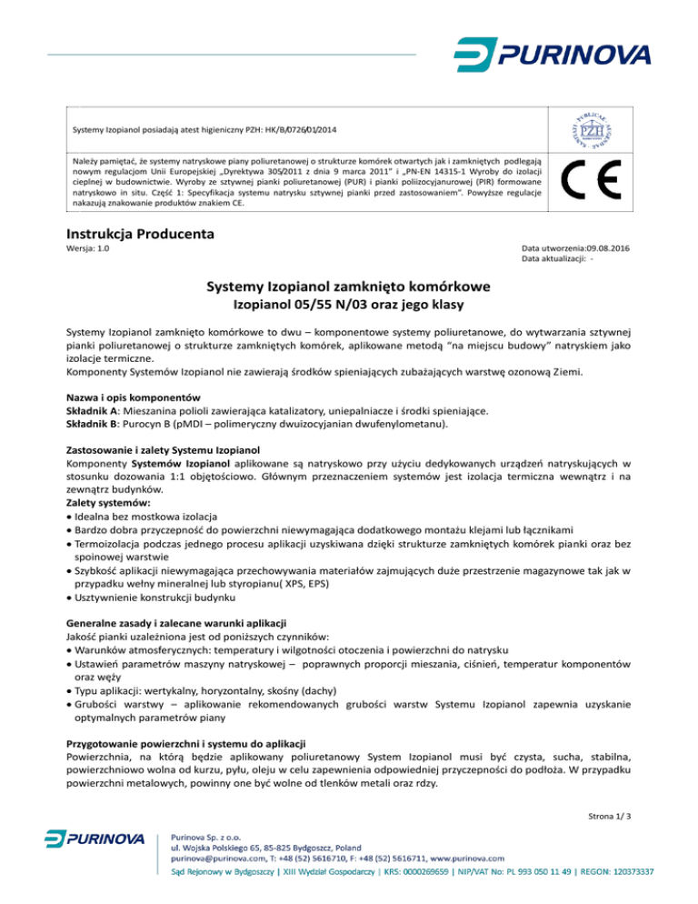 Instrukcja Producenta Systemy Izopianol zamknięto komórkowe