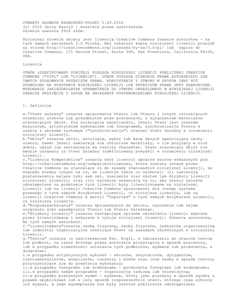 OTWARTY SŁOWNIK KAZACHSKO-POLSKI V.03.2010