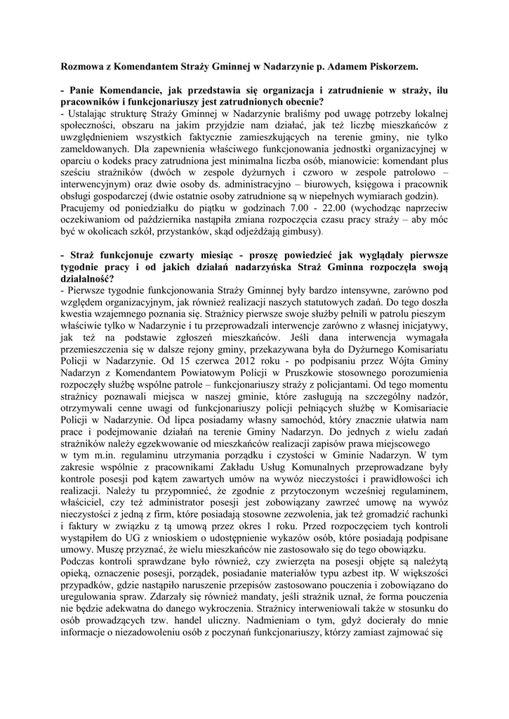 Rozmowa z Komendantem Straży Gminnej w Nadarzynie p