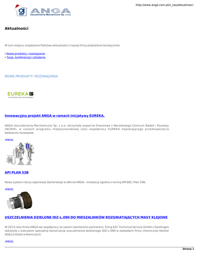 Aktualności - ANGA Uszczelnienia Mechaniczne