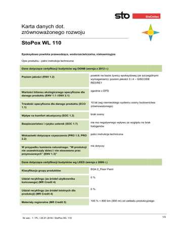 Karta danych dot. zrównoważonego rozwoju StoPox WL 110