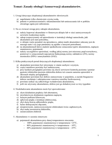 Temat: Zasady obsługi i konserwacji akumulatorów.