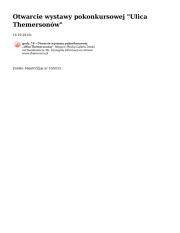 Otwarcie wystawy pokonkursowej "Ulica Themersonów" 16-10-2015r. Źródło: MiastO!Żyje nr 10/2015