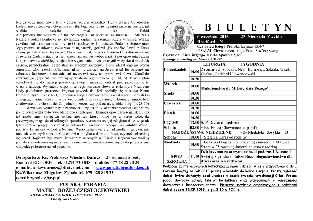 biuletyn - Polska Parafia Katolicka w Bradford