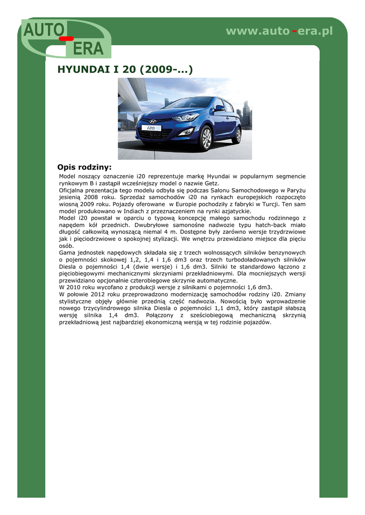Opis rodziny: HYUNDAI I 20. - AUTO-ERA
