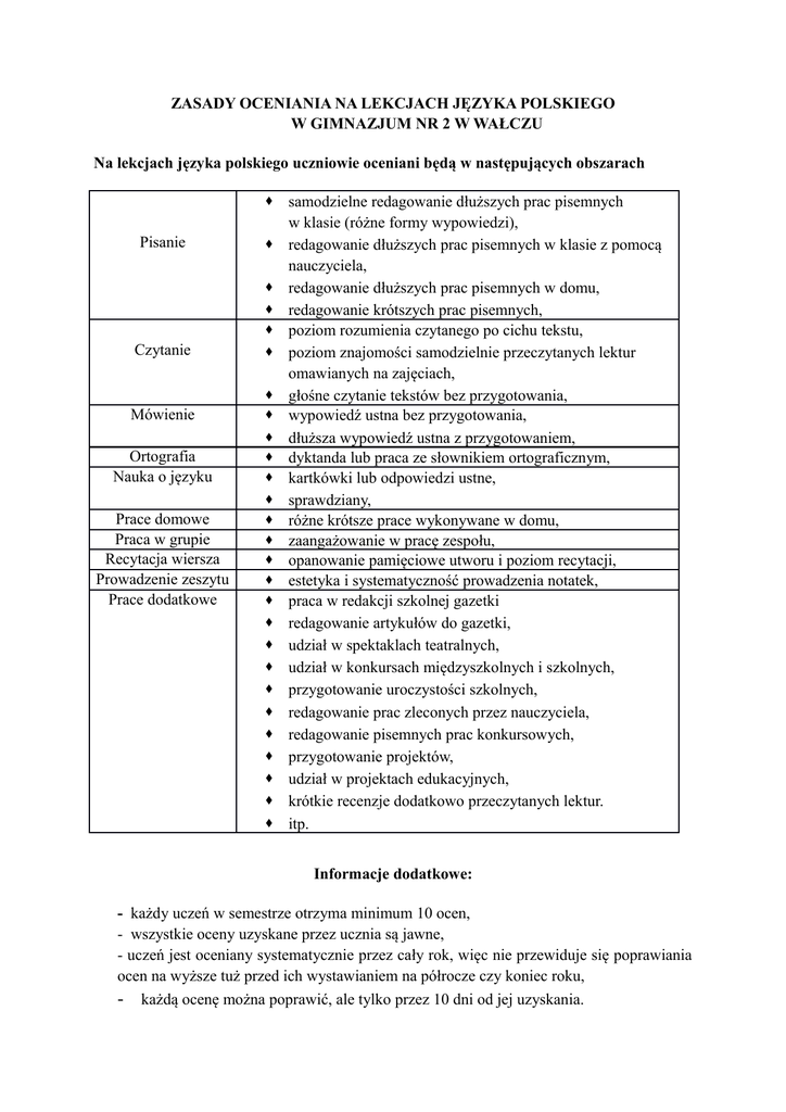 ZASADY OCENIANIA NA LEKCJACH JĘZYKA POLSKIEGO W
