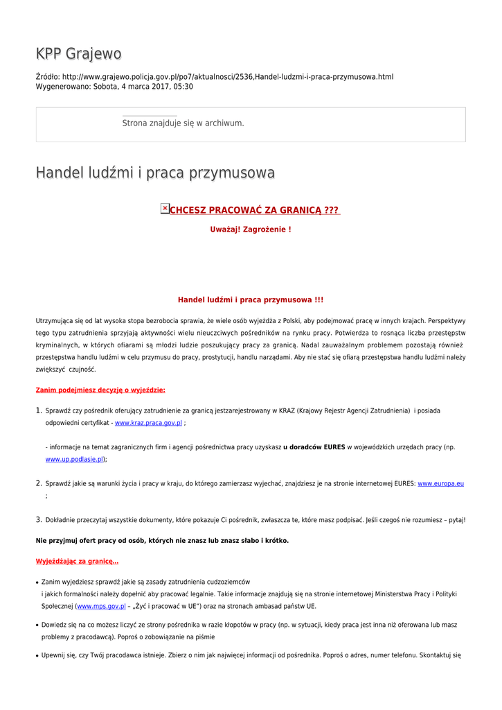 KPP Grajewo Handel ludźmi i praca przymusowa