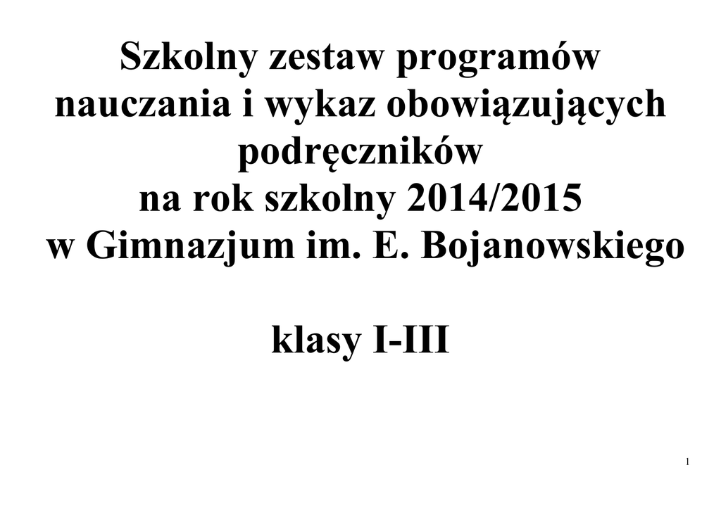 Szkolny zestaw programów nauczania i wykaz obowiązujących