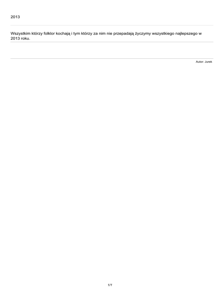 2013 Wszystkim którzy folklor kochają i tym którzy za nim nie przepadają życzymy wszystkiego najlepszego w 2013 roku. Autor: Jurek 1/1
