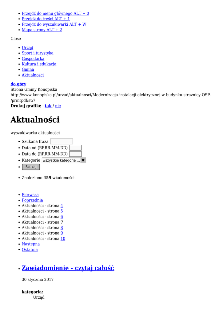 Przejdź do menu głównego ALT + 0 Przejdź do treści ALT + 1 Przejdź do wyszukiwarki ALT + W Mapa strony ALT + 2 Close Urząd Sport i turystyka Gospodarka Kultura i edukacja Gmina Aktualności do góry Strona Gminy Konopiska http://www.konopiska.pl/urzad/aktualnosci/Modernizacja-instalacji-elektrycznej-w-budynku-straznicy-OSP/printpdf/st:7 Drukuj grafikę : tak / nie Aktualności wyszukiwarka aktualności Szukana fraza Data od (RRRR-MM-DD) Data do (RRRR-MM-DD) Kategorie wszystkie kategorie ... ▼ Szukaj Znaleziono 459 wiadomości. Pierwsza Poprzednia Aktualności - strona 4 Aktualności - strona 5 Aktualności - strona 6 Aktualności - strona 7 Aktualności - strona 8 Aktualności - strona 9 Aktualności - strona 10 Następna Ostatnia Zawiadomienie - czytaj całość 30 stycznia 2017 kategoria: Urząd Na podstawie art. 20 ust. 1 ustawy o samorządzie gminnym z dnia 8 marca 1990 r. (Dz. U. z 2016 poz. 446) zawiadamiam, że dnia 31 stycznia 2017 r. (wtorek) o godz. 12.00 w sali konferencyjnej Urzędu Gminy w Konopiskach odbędzie się XXVIII sesja Rady Gminy Konopiska Zawiadomienie Zawiadomienie - czytaj całość ERASMUS + - czytaj całość 29 stycznia 2017 kategoria: Kultura i Edukacja W grudniu otrzymaliśmy informację z Fundacji Systemu Rozwoju Edukacji, że Zespół Szkół w Konopiskach uzyskał akceptację na realizację projektu pt. : „Take a Chance- Skorzystaj z szansy” w ramach programu Erasmus +. Magiczna data i prawdziwy mikołajkowy prezent, który szczególnie ucieszył autorów projektu oraz dyrekcję szkoły. ERASMUS + ERASMUS + - czytaj całość OBWIESZCZENIE - czytaj całość 26 stycznia 2017 kategoria: Gospodarka OBWIESZCZENIE WÓJTA GMINY KONOPISKA OBWIESZCZENIE OBWIESZCZENIE - czytaj całość Po feriach w Promyku nowy plan zajęć! - czytaj całość 25 stycznia 2017 kategoria: Pomoc społeczna Już za niespełna dwa tygodnie w Promyku nowy plan! Oprócz zajęć, które dotychczas odbywały się w placówce – kilka nowości! Każdy, kto chciałby przeczytać Mikołajka w oryginale, ma niebywałą okazję, ponieważ po feriach rozpoczynamy przygodę z językiem francuskim! Po feriach w Promyku nowy plan zajęć! Po feriach w Promyku nowy plan zajęć! - czytaj całość Kolejna promykowa wycieczka za nami! - czytaj całość 24 stycznia 2017 kategoria: Pomoc społeczna Tym razem poznaliśmy tajemnice tarnogórskich podziemi. W poniedziałek, w pierwszy dzień ferii zimowych, odwiedziliśmy Sztolnię Czarnego Pstrąga oraz Zabytkową Kopalnię Srebra w Tarnowskich Górach. Wyprawę rozpoczęliśmy od ekscytującego i pełnego emocji podziemnego rejsu łódkami. Kolejna promykowa wycieczka za nami! Kolejna promykowa wycieczka za nami! - czytaj całość REGULAMIN XVI MIĘDZYPOWIATOWEGO KONKURSU PLASTYCZNEGO NA KARTKĘ WALENTYNKOWĄ - czytaj całość 23 stycznia 2017 kategoria: Kultura i Edukacja REGULAMIN XVI MIĘDZYPOWIATOWEGO KONKURSU PLASTYCZNEGO NA KARTKĘ WALENTYNKOWĄ REGULAMIN XVI MIĘDZYPOWIATOWEGO KONKURSU PLASTYCZ REGULAMIN XVI MIĘDZYPOWIATOWEGO KONKURSU PLASTYCZNEGO NA KARTKĘ WALENTYNKOWĄ - czytaj całość Drużyna Powiatu - czytaj całość 20 stycznia 2017 kategoria: Pomoc społeczna Projekt partnerski „Drużyna Powiatu”, który Gminny Ośrodek Pomocy Społecznej w Konopiskach, jako Partner Powiatowego Centrum Pomocy Rodzinie w Częstochowie oraz Ośrodków Pomocy Społecznej z terenu powiatu częstochowskiego, realizuje w latach 2016-2017 jest już na półmetku. Drużyna Powiatu Drużyna Powiatu - czytaj całość Aktywny Prometeus - czytaj całość 19 stycznia 2017 kategoria: Pomoc społeczna Październik i grudzień 2016 roku bardzo aktywnie spędzali członkowie Stowarzyszenia Osób Niepełnosprawnych Ruchowo, ich Rodzin i Przyjaciół „Prometeus”. Aktywny Prometeus Aktywny Prometeus - czytaj całość Aktywni z PZU - czytaj całość 19 stycznia 2017 kategoria: Kultura i Edukacja Magiczny nastrój Świąt Bożego Narodzenia nie opuścił uczestników projektu „Aktywni z PZU” realizowanego przez Stowarzyszenie Osób Niepełnosprawnych Ruchowo, ich Rodzin i Przyjaciół „Prometeus”. W niedzielę 8 stycznia 2017 roku uczestnicy muzykoterapii pod dyrekcją pana Dariusza Madejskiego zapewnili muzyczna oprawę mszy świętych. Aktywni z PZU Aktywni z PZU - czytaj całość Zapisy na wycieczkę! - czytaj całość 19 stycznia 2017 kategoria: Kultura i Edukacja Ze względu na duże zainteresowanie wycieczką do Gliwic na „Największą w Polsce Edukacyjną Wystawę Budowli z Klocków LEGO” GCKiR organizuje wyjazd ponownie! Zapisy na wycieczkę! Zapisy na wycieczkę! - czytaj całość Pierwsza Poprzednia Aktualności - strona 4 Aktualności - strona 5 Aktualności - strona 6 Aktualności - strona 7 Aktualności - strona 8 Aktualności - strona 9 Aktualności - strona 10 Następna Ostatnia