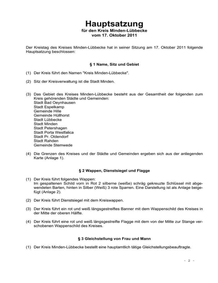 Hauptsatzung - Kreis Minden Lübbecke