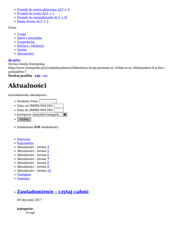 Przejdź do menu głównego ALT + 0 Przejdź do treści ALT + 1 Przejdź do wyszukiwarki ALT + W Mapa strony ALT + 2 Close Urząd Sport i turystyka Gospodarka Kultura i edukacja Gmina Aktualności do góry Strona Gminy Konopiska http://www.konopiska.pl/urzad/aktualnosci/Odbudowa-drogi-gminnej-ul.-Orlika-w-m.-Aleksandria-II-w-km-/ printpdf/st:7 Drukuj grafikę : tak / nie Aktualności wyszukiwarka aktualności Szukana fraza Data od (RRRR-MM-DD) Data do (RRRR-MM-DD) Kategorie wszystkie kategorie ... ▼ Szukaj Znaleziono 459 wiadomości. Pierwsza Poprzednia Aktualności - strona 4 Aktualności - strona 5 Aktualności - strona 6 Aktualności - strona 7 Aktualności - strona 8 Aktualności - strona 9 Aktualności - strona 10 Następna Ostatnia Zawiadomienie - czytaj całość 30 stycznia 2017 kategoria: Urząd Na podstawie art. 20 ust. 1 ustawy o samorządzie gminnym z dnia 8 marca 1990 r. (Dz. U. z 2016 poz. 446) zawiadamiam, że dnia 31 stycznia 2017 r. (wtorek) o godz. 12.00 w sali konferencyjnej Urzędu Gminy w Konopiskach odbędzie się XXVIII sesja Rady Gminy Konopiska Zawiadomienie Zawiadomienie - czytaj całość ERASMUS + - czytaj całość 29 stycznia 2017 kategoria: Kultura i Edukacja W grudniu otrzymaliśmy informację z Fundacji Systemu Rozwoju Edukacji, że Zespół Szkół w Konopiskach uzyskał akceptację na realizację projektu pt. : „Take a Chance- Skorzystaj z szansy” w ramach programu Erasmus +. Magiczna data i prawdziwy mikołajkowy prezent, który szczególnie ucieszył autorów projektu oraz dyrekcję szkoły. ERASMUS + ERASMUS + - czytaj całość OBWIESZCZENIE - czytaj całość 26 stycznia 2017 kategoria: Gospodarka OBWIESZCZENIE WÓJTA GMINY KONOPISKA OBWIESZCZENIE OBWIESZCZENIE - czytaj całość Po feriach w Promyku nowy plan zajęć! - czytaj całość 25 stycznia 2017 kategoria: Pomoc społeczna Już za niespełna dwa tygodnie w Promyku nowy plan! Oprócz zajęć, które dotychczas odbywały się w placówce – kilka nowości! Każdy, kto chciałby przeczytać Mikołajka w oryginale, ma niebywałą okazję, ponieważ po feriach rozpoczynamy przygodę z językiem francuskim! Po feriach w Promyku nowy plan zajęć! Po feriach w Promyku nowy plan zajęć! - czytaj całość Kolejna promykowa wycieczka za nami! - czytaj całość 24 stycznia 2017 kategoria: Pomoc społeczna Tym razem poznaliśmy tajemnice tarnogórskich podziemi. W poniedziałek, w pierwszy dzień ferii zimowych, odwiedziliśmy Sztolnię Czarnego Pstrąga oraz Zabytkową Kopalnię Srebra w Tarnowskich Górach. Wyprawę rozpoczęliśmy od ekscytującego i pełnego emocji podziemnego rejsu łódkami. Kolejna promykowa wycieczka za nami! Kolejna promykowa wycieczka za nami! - czytaj całość REGULAMIN XVI MIĘDZYPOWIATOWEGO KONKURSU PLASTYCZNEGO NA KARTKĘ WALENTYNKOWĄ - czytaj całość 23 stycznia 2017 kategoria: Kultura i Edukacja REGULAMIN XVI MIĘDZYPOWIATOWEGO KONKURSU PLASTYCZNEGO NA KARTKĘ WALENTYNKOWĄ REGULAMIN XVI MIĘDZYPOWIATOWEGO KONKURSU PLASTYCZ REGULAMIN XVI MIĘDZYPOWIATOWEGO KONKURSU PLASTYCZNEGO NA KARTKĘ WALENTYNKOWĄ - czytaj całość Drużyna Powiatu - czytaj całość 20 stycznia 2017 kategoria: Pomoc społeczna Projekt partnerski „Drużyna Powiatu”, który Gminny Ośrodek Pomocy Społecznej w Konopiskach, jako Partner Powiatowego Centrum Pomocy Rodzinie w Częstochowie oraz Ośrodków Pomocy Społecznej z terenu powiatu częstochowskiego, realizuje w latach 2016-2017 jest już na półmetku. Drużyna Powiatu Drużyna Powiatu - czytaj całość Aktywny Prometeus - czytaj całość 19 stycznia 2017 kategoria: Pomoc społeczna Październik i grudzień 2016 roku bardzo aktywnie spędzali członkowie Stowarzyszenia Osób Niepełnosprawnych Ruchowo, ich Rodzin i Przyjaciół „Prometeus”. Aktywny Prometeus Aktywny Prometeus - czytaj całość Aktywni z PZU - czytaj całość 19 stycznia 2017 kategoria: Kultura i Edukacja Magiczny nastrój Świąt Bożego Narodzenia nie opuścił uczestników projektu „Aktywni z PZU” realizowanego przez Stowarzyszenie Osób Niepełnosprawnych Ruchowo, ich Rodzin i Przyjaciół „Prometeus”. W niedzielę 8 stycznia 2017 roku uczestnicy muzykoterapii pod dyrekcją pana Dariusza Madejskiego zapewnili muzyczna oprawę mszy świętych. Aktywni z PZU Aktywni z PZU - czytaj całość Zapisy na wycieczkę! - czytaj całość 19 stycznia 2017 kategoria: Kultura i Edukacja Ze względu na duże zainteresowanie wycieczką do Gliwic na „Największą w Polsce Edukacyjną Wystawę Budowli z Klocków LEGO” GCKiR organizuje wyjazd ponownie! Zapisy na wycieczkę! Zapisy na wycieczkę! - czytaj całość Pierwsza Poprzednia Aktualności - strona 4 Aktualności - strona 5 Aktualności - strona 6 Aktualności - strona 7 Aktualności - strona 8 Aktualności - strona 9 Aktualności - strona 10 Następna Ostatnia