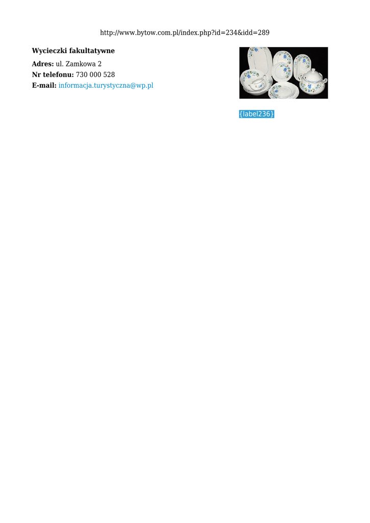 http://www.bytow.com.pl/index.php?id=234&idd=289 Wycieczki fakultatywne Adres: ul. Zamkowa 2 Nr telefonu: 730 000 528 E-mail: [email protected] {label236} Dzień 1: ŁUBIANA - WIEŻYCA - CHMIELNO - SZYMBARK Po śniadaniu przejazd do Łubiany Zakład Porcelany Stołowej "Lubiana" - zwiedzanie z przewodnikiem. Zdobywanie najwyższego wzniesienia na Kaszubach - wspaniałe widoki z wieży widokowej na Wieżycy. Odwiedzimy Muzeum i Pracowni Ceramiki Neclów w Chmielnie, gdzie można poznać tajniki powstawania tradycyjnych kaszubskich glinianych naczyń. Centrum Edukacji w Szymbarku - zwiedzanie z przewodnikiem atrakcji takich jak: "dom do góry nogami”, największy FORTEPIAN, najdłuższa deska świata wpisana do Księgi Rekordów Guinesa, siedzenie przy najdłuższym na świecie stole, zwiedzanie domu Sybiraka, repliki łagru, zabytkowego pociągu, którym Polacy wywożeni byli na Syberię, repliki bunkra z efektami świetlno - akustycznymi imitującymi nalot bombowy. Zamiennie zamiast Centrum Edukacji w Szymbarku można zwiedzać z przewodnikiem skansen we Wdzydzach. Powrót na obiadokolację i nocleg. Dzień 2: GDAŃSK - SOPOT Po śniadaniu przejazd do Gdańska. Zwiedzanie Gdańska z przewodnikiem: spacer po starym mieście: Kościół Mariacki, Dwór Artusa, ratusz, Spacer nad Motławą, Żuraw. Przejazd do Oliwy : zwiedzanie katedry z zabytkowymi organami, park oliwski. Sopot – piękna, szeroka plaża i najdłuższe drewniane molo, spacer po słynnym deptaku Monte Casino z Krzywym Domkiem i licznymi restauracjami i kafejkami. Powrót na obiadokolację i nocleg. Dzień 3: MALBORK- PELPLIN- FRANK RAJ Po śniadaniu przejazd do Malborka, gdzie będzie zwiedzanie z przewodnikiem i zapoznanie się z historią imponujacego średniowiecznego gotyckiego zespółu zamkowego Zakonu Krzyżackiego (Muzeum Zamkowe z galerią bursztynu). Pelplin z przepięknym zabytkiem, Bazyliką Katedralną z przełomu XIII – XIV wieku, zaliczaną do najpiękniejszych dzieł gotyckich w Polsce. Po dużej dawce historii proponujemy relaks w Frank Raju, gdzie spacerując alejami można podziwiać repliki wybranych najpięknieszych ogrodów polskich. Powrót na obiadokolację i nocleg. Dzień 4: SMOŁDZINO – KLUKI - ŁEBA Zwiedzanie muzeum Słowińskiego Parku Narodowego w Smołdzinie. Zwiedzanie z przewodnikiem Skansenu w Klukach. Wyprawa do Słowińskiego Parku Narodowego. Łeba- przejazd wózkami elektrycznymi oraz przejście znakowanym szlakiem turystycznym, zdobywanie najwyższego w Polsce piaskowego wzniesienia - Łąckiej Góry. Spacer uliczkami Łeby. Powrót na obiadokolację i nocleg. {label8}