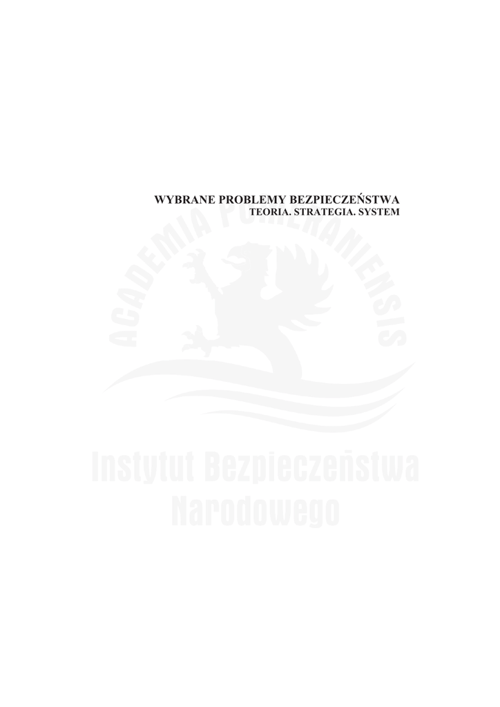 WYBRANE PROBLEMY BEZPIECZEēSTWA TEORIA. STRATEGIA. SYSTEM Katedra BezpieczeĔstwa Narodowego Akademia Pomorska w Sáupsku WYBRANE PROBLEMY BEZPIECZEēSTWA TEORIA. STRATEGIA. SYSTEM Redakcja naukowa Andrzej Urbanek Sáupsk 2012 Recenzje: dr hab. Tadeusz KASPEREK pracownik naukowy Katedry BezpieczeĔstwa Narodowego Akademii Pomorskiej w Sáupsku Doc. PhDr. František ŠKVRNDA, CSc. Kierownik Katedry MiĊdzynarodowych Stosunków Politycznych Uniwersytetu Ekonomicznego w Bratysáawie Redakcja jĊzykowa i korekta GraĪyna Szot Redakcja techniczna Tomasz Pączek Projekt okáadki Andrzej Urbanek, Tomasz Pączek © Copyright by Andrzej Urbanek ĩadna czĊĞü tej publikacji nie moĪe byü powielana w jakiejkolwiek formie za pomocą Ğrodków elektronicznych, mechanicznych, kopiujących, nagrywających i innych bez uprzedniej pisemnej zgody wáaĞciciela praw autorskich. Ryciny na okáadce pochodzą z ogólnodostĊpnych zasobów Internetu. ISBN 978-83-936989-0-5 Wydawnictwo Spoáeczno-Prawne 76200 Sáupsk, ul. Banacha 7/96 tel. 59 843-61-36; 728-888-133 Nakáad 100 egz. Drukarnia PPHU TOTEM s.c. M. Rejnowski, J. Zamiara ul. Jacewska 89, 88100 Inowrocáaw SPIS TREĝCI WSTĉP……………………………………………………………….... Rozdziaá 1 – Andrzej Urbanek BezpieczeĔstwo narodowe – podstawowe kategorie terminologiczne i ich klasyfikacja…………………………………………………… 1.1. Ewolucja i wspóáczesne rozumienie terminu bezpieczeĔstwo…….. 1.2. PojĊcie bezpieczeĔstwa narodowego i związanych z nim kategorii 1.3. Kategorie (dziedziny) bezpieczeĔstwa – próba systematyzacji…… 1.4. Securitologia – nauka o bezpieczeĔstwie czáowieka i organizacji spoáecznych ……………………..………………………………… 1.5. Konkluzje i refleksje koĔcowe ....…………………………………. Rozdziaá 2 – Andrzej Urbanek System bezpieczeĔstwa narodowego – podstawy aksjologiczne i teleologiczne, uwarunkowania, struktura………………………….. 2.1. Aksjologiczne i teleologiczne podstawy bezpieczeĔstwa narodowego………………………………………………………... 2.2. Uwarunkowania bezpieczeĔstwa narodowego Polski …………….. 2.3. System bezpieczeĔstwa narodowego Rzeczypospolitej Polskiej….. 2.4. Konkluzje i refleksje koĔcowe ...………………………………….. Rozdziaá 3 – Andrzej Urbanek Wyzwania i zagroĪenia bezpieczeĔstwa……………………………... 3.1. PojĊcie i istota zagroĪeĔ bezpieczeĔstwa …………………………. 3.2. Klasyfikacja zagroĪeĔ …………………………...………………... 3.3. Wyzwania i zagroĪenia bezpieczeĔstwa globalnego, europejskiego i narodowego ………………………………………. 3.4. Konkluzje i refleksje koĔcowe ...………………………………….. 9 11 11 19 28 34 35 38 38 53 59 69 71 71 79 84 91 Rozdziaá 4 – Andrzej Urbanek MiĊdzynarodowe Ğrodowisko bezpieczeĔstwa i jego wspóáczesne uwarunkowania……………………………………………………….. 4.1. Nowy áad miĊdzynarodowy ……………………………………….. 4.2. ĝrodowisko bezpieczeĔstwa i jego uwarunkowania ……………… 4.3. Instytucjonalny wymiar wspóáczesnego Ğrodowiska bezpieczeĔstwa…………………………………………………….. 4.4. Konkluzje i refleksje koĔcowe ...………………………………….. 109 115 Rozdziaá 5 – Stanisáaw Zarobny Polityka i strategia bezpieczeĔstwa paĔstwa na tle wspóáczesnych wyzwaĔ i zagroĪeĔ ……………………………………………………. 117 93 93 101 5 5.1. Wprowadzenie ..…………………………………………………… 5.2. PojĊcie strategii bezpieczeĔstwa i jej ewolucja …………………… 5.3. Nowa jakoĞü bezpieczeĔstwa na progu XXI wieku ...…………….. 5.4. Redefinicja strategii bezpieczeĔstwa narodowego RP ……………. 5.5. Konkluzje i refleksje koĔcowe ...………………………………….. Rozdziaá 6 – Lech Chojnowski BezpieczeĔstwo powszechne …………………………………………. 6.1. Wprowadzenie ………………………………..…………………… 6.2. Sektor bezpieczeĔstwa powszechnego ……………………………. 6.3. BezpieczeĔstwo powszechne ……………………………………… 6.4. BezpieczeĔstwo powszechne a bezpieczeĔstwo i porządek Publiczny…………………………………………………………... 6.5. ZagroĪenia bezpieczeĔstwa powszechnego ……………………….. 6.6. System ochrony ludnoĞci ………………………………………….. 6.7. Sytuacje kryzysowe, zarządzanie kryzysowe i terminy powszechne 6.8. Obrona cywilna …………………………………………………… 6.9. System alarmowania i ostrzegania ………………………………... 6.10. Konkluzje i refleksje koĔcowe ...……………………………… Rozdziaá 7 – Remigiusz WiĞniewski Rudymenty systemu obronnego Rzeczypospolitej Polskiej ……..…. 7.1. ZaáoĪenia wstĊpne ………………………………………………… 7.2. Udziaá Rzeczypospolitej Polskiej w budowaniu europejskiego systemu obronnego ………………………………………………... 7.3.Podstawowe zaáoĪenia strategii bezpieczeĔstwa Rzeczypospolitej Polskiej…………………………………………... 7.4. BezpieczeĔstwo paĔstwa – system obronnoĞci Rzeczypospolitej Polskiej………………………………………….. Rozdziaá 8 – Stanisáaw Kozdrowski BezpieczeĔstwo ekologiczne w Ğwietle ogólnych uwarunkowaĔ bezpieczeĔstwa Rzeczypospolitej Polskiej ……………..…………… 8.1. BezpieczeĔstwo i jego istota ……………………………………… 8.2. Konstytucyjna ochrona bezpieczeĔstwa …………………………... 8.3. Diagnoza stanu bezpieczeĔstwa 