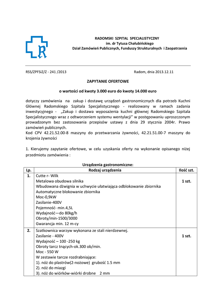 P-Z241-2013 zapytanie ofertowe na zakup i dostawe urzadzen