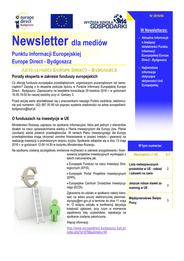 Newsletter dla mediów - Punkt Informacji Europejskiej Europe Direct