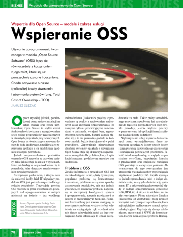 BIZNES Wsparcie dla oprogramowania Open Source Wsparcie dla Open Source – modele i zakres usługi Wspieranie OSS Używanie oprogramowania tworzonego w modelu „Open Source Software” (OSS) łączy się równocześnie z korzystaniem z jego zalet, które są już powszechnie uznane i docenione. Chodzi oczywiście o niższe (całkowite) koszty stworzenia i utrzymania systemów (ang. Total Cost of Ownership – TCO). JANUSZ ŚLĘZAK O AUTOR prócz wysokiej jakości, potwierdzonej przez tysiące instalacji na całym świecie oraz rzesze użytkowników, Open Source to szybki wzrost funkcjonalności związany z zaangażowaniem setek tysięcy programistów uczestniczących w otwartych projektach programistycznych. Open Source to również zagwarantowany dostęp do kodu źródłowego, umożliwiający poprawianie aplikacji i ich modyfikacje zgodnie z własnymi potrzebami. Jednak rozpowszechnianie produktów opartych o OSS napotyka na oczywiste bariery, takie jak niechęć do zmian w systemach, które już działają w innym środowisku. Są to przeszkody, które dotyczą w zasadzie wszystkich nowych produktów. Szczególnym problemem, z którym musi się zmierzyć każdy dział IT używający produktów OSS, jest potrzeba wsparcia dla tego rodzaju produktów. Tradycyjnie projekty OSS tworzone są przez wolontariuszy, pracujących nad oprogramowaniem w różnych miejscach na świecie – bez wspólnego 78 Janusz Ślęzak – pełni funkcję Business Development Manager w Centrum Wsparcia Technologii Open Source Altkom Akademia S.A. Sierpień 2004 zwierzchnictwa. Jakkolwiek projekty te prowadzone są zwykle z zachowaniem najlepszych zasad inżynierii oprogramowania (ze znanymi cyklami produkcyjnymi, informacjami o zmianach, wersjami beta, rygorystycznym testowaniem, bazami danych błędów, itp.), to nie gwarantują jednak, że końcowy produkt będzie funkcjonował w pełni prawidłowo. Zapewnienie niezawodnego działania systemów opartych o rozwiązania Open Source staje się kluczowym zagadnieniem, szczególnie dla tych firm, których aplikacje krytyczne i produkcyjne pracują w tym środowisku. Problem z OSS Zwykle informacja o produktach OSS jest szeroko dostępna: istnieją listy dyskusyjne, popularne problemy są komentowane i omawiane, publikowane są nowe sposoby zastosowania produktów, nie ma jednak gwarancji, że konkretny problem, napotkany w szczególnej konfiguracji sprzętu i oprogramowania, zostanie rozwiązany i to jeszcze w zadowalającym terminie. Ponieważ kod źródłowy jest zawsze dostępny, to rozwiązanie problemu wydaje się być właściwie na wyciągnięcie ręki – jednak nikt nie bierze odpowiedzialności za jego rozwiązanie. Sama informacja to jednak zdecy- www.linux-magazine.pl dowanie za mało. Także próby samodzielnego rozwiązania problemu lub zatrudnianie do tego celu przypadkowych osób zwykle powodują jeszcze większe przerwy w pracy systemu lub aplikacji i narażają firmę na duże koszty dodatkowe. Wykorzystanie usług wsparcia dostarczanych przez wyspecjalizowaną firmę zewnętrzną ogranicza w istotny sposób koszty i daje gwarancję odpowiedniego czasu reakcji i rozwiązania powstających problemów. Jakość świadczonych usług, ze względu na posiadane certyfikaty, bezpośredni kontakt z producentem oraz znajomość rozwiązań OSS, pozostaje na najwyższym poziomie. Alternatywnym do tego rozwiązaniem jest utworzenie własnych zasobów wspierających użytkowane produkty OSS. Zwykle wymaga to jednak zgromadzenia ludzi o dużym doświadczeniu, znających administrację systemami IT, a także umiejących poprawiać błędy w cudzym oprogramowaniu, generować łatki, RPM, itp. A nie jest to ani łatwe, ani tanie rozwiązanie. Firmy używające Linuksa (niezależnie od dystrybucji) mogą również korzystać z oferty wsparcia producenta, która najczęściej jest realizowana w ramach opłaty subskrybcyjnej. Uzyskuje się dostęp telefoniczny, przez e-mail i WWW do konsultantów, którym można zgłosić problem. Rozwią- Wsparcie dla oprogramowania Open Source zanie, najczęściej w postaci łatki, dostarczane jest na adres zgłaszającego. Można również skorzystać z repozytorium już rozwiązanych problemów (np. Bugzilla, WWW), co znacznie przyspiesza czas rozwiązania powstałego problemu. Rozwiązanie to, na pozór wygodne i funkcjonalne, ma jednak zasadnicze wady. Są nimi: bariera językowa (serwis jest najczęściej wyłącznie anglojęzyczny) oraz nieprzewidywalny (często zbyt długi) czas uzyskania rozwiązania przy zgłaszaniu bardziej skomplikowanych problemów. W przypadku konieczności zapewnienia stałego dostępu do usług i aplikacji działających w OSS, powyższe rozwiązanie wydaje się być z oczywistych powodów niewystarczające. Model pomocy Wsparcie produktów Open Source Software można podzielić na kilka kategorii, w których różna znajomość środowiska klienta pozwala na dotrzymanie coraz wyższego poziomu gwarantowanej bezawaryjności i gwarantowanego czasu reakcji potrzebnego do rozwiązania potencjalnego problemu. Istotnym elementem gwarancji poprawnego działania jest też interakcja pomiędzy różnymi produktami OSS, komercyjnym oprogramowaniem oraz sprzętem komputerowym i sieciowym. Określany jest czas reakcji i godziny zgłoszeń incydentów i pytań w modelu 5/8 i 24/7. Istnieje kilka dostępnych modeli udzielania wsparcia. Usługa ta zwykle dzielona jest na kategorie związane z zakresem dostępu. Można się zdecydować na model obejmujący tylko wybrane, najpopularniejsze oprogramowanie OSS. Zwykle w takim przypadku czas dostępu do serwisu ogranicza się do dni roboczych. Zamawiający na ogół wykupuje abonament obejmujący określoną liczbę zgłoszeń. Propozycja ta skierowana jest do użytkowników pracujących na oprogramowaniu OSS w ograniczonym lub podstawowym zakresie. Jeżeli firma korzysta z OSS w szerszym zakresie funkcjonalnym, a pakiet wykorzystywanego oprogramowania zawiera prog