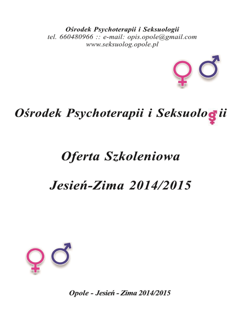 Asystent rodziny- podstawa wiedzy teoretycznej i metodyka pracy Termin/Godzina: 29-30.11.2014 r./ sobota 9:00-16:30, niedziela 09:00-16:30 Koszt: 400zł Prowadzący: mgr Katarzyna Warmuz, mgr Wioletta Suzańska Adresaci: Szkolenie przeznaczone jest dla studentów, pracowników socjalnych, psychologów, pedagogów, terapeutów – osób zainteresowanych pracą asystenta rodziny lub już pracujących jako asystenci rodziny. Program szkolenia: 1. Wstęp do pracy asystenta rodziny z ustawą w rękach czyli elementy ustawy o wspieraniu rodziny i systemie pieczy zastępczej. 2. Systemowe podejście do rodziny i jego zastosowanie w pracy asystenta rodziny. 3. Etapy metodycznego działania asystenta rodziny: diagnoza – rola właściwej diagnozy w pracy asystenta rodziny, narzędzia służące diagnozie, opracowanie planu pracy z rodziną, realizacja planu pracy z rodziną i jego ewentualna modyfikacja ze względu na zmianę sytuacji rodziny i zgłaszanych potrzeb, okresowa ocena sytuacji rodziny - zakończenie współpracy asystenta z rodziną, okresowy monitoring rodziny po zakończeniu współpracy. 4. Praca z rodziną – aspekty praktyczne: style pracy z rodziną, jak budować poprawną relację rodzina-asystent, etapy budowania relacji, poprawna komunikacja i jej znaczenie w pracy asystenta, poszukiwanie zasobów rodziny i możliwości ich wykorzystywania w radzeniu sobie z trudnościami, współpraca asystenta rodziny z instytucjami i służbami pomocowymi, uprawnienia rodzin korzystających z pomocy asystenta rodziny. 5. Dokumentacja pracy asystenta rodziny. 6. Jak uniknąć wypalenia zawodowego. Podstawy diagnozy i interwencji wobec dzieci wykorzystywanych seksualnie w rodzinie Termin/Godzina: 6-7.12.2014 r./ sobota 9:00-16:30, niedziela 09:00-16:30 Koszt: 400zł Prowadzący: mgr Bogumiła Konieczna Adresaci: Szkolenie skierowane jest do studentów, psychologów, pedagogów, pracowników socjalnych, nauczycieli, wychowawców, terapeutów oraz osób, które w swojej pracy zawodowej stykają się z problematyką przemocy, w tym przemocy seksualnej zarówno w kontekście pracy z osobami dorosłymi jak i dziećmi oraz dla osób, które planują podjęcie pracy w tym kierunku. Program szkolenia: Zakres tematyczny szkolenia obejmuje wgląd w wykorzystanie seksualne dziecka z perspektywy ofiary i sprawcy - kazirodcy (zarówno mężczyzny jak i kobiety). Interwencja, diagnoza i podstawy pracy terapeutycznej. 1. Specyficzne i niespecyficzne objawy wykorzystania seksualnego jako wstęp do tematyki przemocy seksualnej. Definicje, skala zjawiska. 2. Normy rozwojowe - rozwój psychoseksualny dzieci w wieku 3-16 lat. 3. Portret psychologiczny dziecka ofiary wykorzystania seksualnego. 4. Portret psychologiczny rodziny kazirodczej, związki kazirodcze. 5. Charakterystyka sprawców przemocy seksualnej wobec dzieci z naciskiem na sprawców rodzinnych. 6. Ujawnianie faktu wykorzystania seksualnego przez dzieci. 7. Czynniki ryzyka i dynamika przemocy seksualnej. 8. Wstępna diagnoza i interwencja w przypadku podejrzenia wykorzystania seksualnego, zebranie materiału (od dziecka, rodzica, opiekuna) – film. 9. Podstawy i specyfika pracy z dzieckiem wykorzystanym seksualnie. 10. Różne formy pomocy wobec dzieci ofiar wykorzystania seksualnego. Świat widziany oczami terapeuty systemowego – podstawy psychoterapii systemowej Termin/Godzina: 13-14.12.2014 r. / sobota 9:00-16:30, niedziela 09:00-16:30 Koszt: 400zł Prowadzący: mgr Bogumiła Konieczna, mgr Katarzyna Warmuz Adresaci: Szkolenie przeznaczone jest dla studentów, psychologów, pedagogów oraz osób wykonujących pracę terapeutyczną i/lub będących w trakcie kształcenia w kierunku psychoterapii. Zapraszamy osoby zastanawiające się, który kierunek pracy z klientem wybrać. Program szkolenia: Szkolenie w sposób praktyczny przedstawia systemowy model pracy terapeutycznej, stosowane metody i narzędzia. 1. Podstawowe założenia i pojęcia terapii systemowej. 2. Świat zasobów i wartości – charakterystyka pracy terapeuty systemowego. 3. Rozpoczęcie pracy systemowej – zlecenie klienta możliwe do przyjęcia. 4. „Systemowa diagnoza” – hipotezy, pytania. 5. Rodzaje klientów i sposoby postępowania w przypadku każdego z nich. 6. Wzorce komunikacji międzyludzkich a terapia par. 7. Fazy pierwszej rozmowy z klientem. 8. Narzędzia pracy terapeutycznej, w tym m.in.: historie mojego życia, interwencje, przeformułowania, praca z genogramem, ustawienia. Praca z rodziną w sytuacji rozstania się rodziców Termin/Godzina: 19.12.2014 r./ piątek 9:00-16:30 Koszt: 200zł Prowadzący: mgr Małgorzata Wasilewska Adresaci: Na szkolenie zapraszamy psychologów, pedagogów, pracowników socjalnych, wychowawców, studentów psychologii, pedagogiki. Program szkolenia: Rozstanie się rodziców, rozwód to sytuacje wymagające zmiany osobistej, rodzinnej. Pociągają za sobą wiele emocji, przeżyć, którym niejednokrotnie trudno jest sprostać. Zakończenie relacji małżeńskiej, czy partnerskiej rodziców jest kryzysem, który może w swoim efekcie doprowadzić do destabilizacji w funkcjonowaniu rodziny. W trakcie szkolenia uczestnicy zapoznają się z psychologicznym obrazem funkcjonowania rodziny po rozstaniu i w trakcie rozstania, diagnozą oraz technikami terapeutycznymi wykorzystywanymi w pracy. Szkolenie składa się z części teoretycznej, ćwiczeń praktycznych oraz analizy przypadków. 1. Psychologiczne aspekty rozstania. 2. Rozstanie, rozwód mechanizmy i typowe zjawiska. 3. Funkcjonowanie rodziców po rozstaniu. 4. Funkcjonowanie dziecka po rozstaniu się rodziców. 5. Konsekwencje rozpadu rodziny. 6. Praca z dzieckiem, wsparcie w sytuacji rozstania. 7. Technika pracy terapeutycznej z rodziną i dzieckiem w sytuacji rozstania rodziców. Diagnoza seksuologiczna i podstawy terapii seksuologicznej Termin/Godzina: 20-21.12.2014 r. / sobota 9:00-16:30, niedziela 09:00-16:30 Koszt: 400zł Prowadzący: mgr Bogumiła Konieczna Adresaci: S