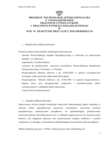 do projektu technologii apteki szpitalnej z uwzględnieniem pracowni