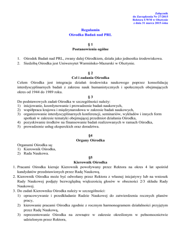 Regulamin Ośrodka Badań nad PRL § 1 Postanowienia ogólne 1