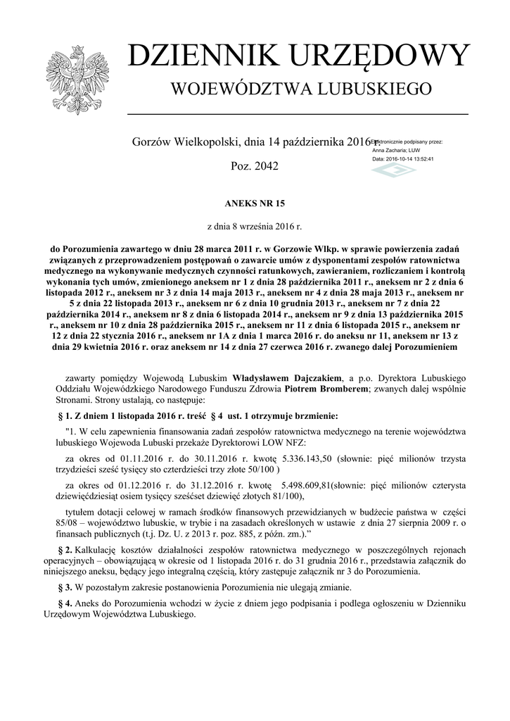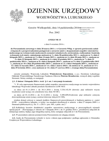 Aneks Nr 15 z dnia 8 września 2016 r.