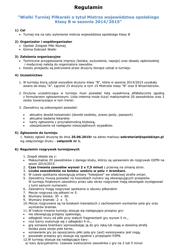 regulamin turnieju - Opolski Związek Piłki Nożnej