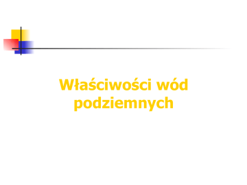Właściwości wód podziemnych Właściwości fizyczne i organoleptyczne wód podziemnych: Temperatura Przeźroczystość. Mętność, Barwa, Radoczynność, Smak, Zapach. Skład chemiczny wód podziemnych zależy od rodzaju i własności skał, przez które przesącza się woda. Najczęściej w wodzie występują: aniony: Cl-, SO4-2, HCO-3, kationy: Na-, Ca+2, Mg+2 mikroelementy: Li , Ba, F, Al, Si, Cu, PB, Cr, As, śladowe: Au, Hg, pierwiastki promieniotwórcze: radon, rad , tor. Woda podziemna zawiera pewne ilości rozpuszczonych gazów: O2,CO2, N2; jony: Na+, K+, Ca+2, Mg+2, Cl-, SO4–2, HCO3-, NO3-; rozpuszczone składniki skalne. Skład chemiczny wód podziemnych Ogólna mineralizacja - wyraża się masą suchej pozostałości (masa osadu po odparowaniu wody w 105°C) do objętości próbki cieczy: Sp = ms/V [mg dm-3] wody normalne ultra słodkie słodkie [mg/dm3]), o podwyższonej mineralizacji [mg/dm3]), mineralne Sp< 500 Sp <100 [mg/dm3] Sp = (100 - 500 Sp = (500 –1000 Sp > 1000 [mg/dm3]. Skład chemiczny wód podziemnych Twardość ogólna – suma twardości węglanowej i niewęglanowej, twardość węglanowa – przemijająca, podczas gotowania tworzy się kamień kotłowy, twardość niewęglanowa – stała. Jednostką jest 1mg CaCO3/dm3 wody (poprzednio 1 miligramorównoważnik [mval] jonu Ca-2 i Mg-2 w 1dm3 wody). 1mg CaCO3/dm3 wody = 0,02 mval Ca/dm3 = 0,05 °n Gdy twardość wody mniejsza od 90 mg CaCO3/dm3 – działa korodująco na przewody wodociągowe, gdy większa od 500 mg CaCO3/dm3, wytrąca się kamień, powodując zmniejszenie przepustowości przewodów. Skład chemiczny wód podziemnych Agresywne działanie wody zależy od wartości stężenia jonów wodorowych pH [= - log(H+)]. Roztwór obojętny kwaśny zasadowy - pH = 7 pH < 7 pH > 7 Rodzaje agresywności wody w stosunku do betonu: agresywność agresywność agresywność agresywność agresywność agresywność ługująca, kwasowa, węglanowa, siarczanowa, magnezowa, amonowa. Rodzaje agresywności wody w stosunku do betonu: agresywność ługująca - przesączanie się wody miękkiej przez beton, wody o niskiej twardości przemijającej węglanowej, silnie agresywnej, wg PN – 80/B – 01800 wody nieagresywne, gdy twardość >1,07 mval/dm3 (w techn. betonów >2,14 mval/dm3). piaskowce środkowej jury - 2 –3,5 mval/dm3 wapienie górnej jury - 1,5 – 3,0 mval/dm3 agresywność kwasowa, zależy od stężenia jonów wodorowych, im mniejsza wartość pH, tym większa agresywność (bardzo silna agresywność, gdy pH < 4,5). Wartość pH wód gruntowych wynosi najczęściej [6,5 – 8,0], wód mających kontakt z bagnami, gdzie występują kwasy humusowe, powstające z rozkładu substancji roślinnej - pH = 4. Rodzaje agresywności wody w stosunku do betonu: agresywność węglanowa – gdy zawartość agresywnego CO2 jest większa od 5 mg/dm3, W wodach podziemnych znajduje się bierny i agresywny CO2, - agresywny, to ta część gazu, która nie jest potrzebna do utrzymania równowagi z występującym w wodzie anionem (HCO3-), występuje często w wodach o pH < 7, agresywność siarczanowa – określa się na podstawie zawartości w wodzie jonu SO-4. Powstaje on w wyniku ługowania skał siarczanowych: gipsu i anhydrytu, oraz utleniania minerałów siarczkowych, np. pirytu. Siarczany wchodzą w reakcje z CaO, tworząc gips. Powstające kryształy gipsu zwiększają objętość i powodują rozsadzanie betonu. Rodzaje agresywności wody w stosunku do betonu: agresywność magnezowa – spowodowana obecnością jonów Mg+2. Siarczan i chlorek Mg wchodzą w reakcje ze związkami Ca zawartymi w betonie. Powstaje Mg(OH)2, który tworzy galaretowatą masę osadzającą się w porach, powstający również gips powoduje rozsadzanie betonu. agresywność amonowa – określana jest zawartością jonów NH+4, które pochodzą: z rozkładu substancji organicznych, białkowych oraz ze ścieków komunalnych i przemysłowych. W reakcji z Ca znajdującym się w betonie tworzą łatwo rozpuszczalne sole wapniowe. Stan bakteriologiczny wód podziemnych Wskaźnikiem zanieczyszczenia wody związkami organicznymi (na których bytują różne bakterie) jest zawartość w niej związków azotu i siarkowodoru oraz zwiększona utlenialność. Stopień zanieczyszczenia bakteriologicznego wyraża się mianem coli, które podaje ilości cm3 wody, na które przypada 1 pałeczka okrężnicy. dla ujęć zaopatrzenia indywidualnego - mc = 10, do 50 tys. mieszkańców - mc = 50, powyżej 50 tys. (w 100 cm3 – 1pałeczka) - mc = 100. Związki azotowe Związki azotowe występować mogą w formie: amoniaku NH3, jonów azotynowych NO2-, jonów azotanowych NO3-, głównie w wodach płytkich, do których dostają się ze źródeł powierzchniowego zanieczyszczenia. Amoniak powstaje wskutek rozkładu substancji białkowych, przy współudziale bakterii nitryfikacyjnych, a następnie utlenia się na azotyny, a te na azotany. Obecność amoniaku w wodzie płytkiej wskazuje na świeże źródło zanieczyszczenia; obecność amoniaku, azotynów i azotanów na dłuższy okres zanieczyszczeń wody. Ogólne zalecenia ochrony przed korozją obiektów budowlanych Badanie właściwości agresywnych wód podziemnych i gruntowych wchodzi w zakres badań geotechnicznych, natomiast zabezpieczenie przed korozją to domena pracy projektanta budowlanego. Zabezpieczenia: izolacja przeciwwilgociowa (gdy podsiąk kapilarny), izolacja przeciwwodna (gdy woda naporowa), drenaż opaskowy (obniżenie poziomu wód gruntowych, wtedy możliwa lżejsza izolacja). Ogniska (źródła) zanieczyszczeń i wpływ gospodarki na jakość wód podziemnych Ogniska (źródła) zanieczyszczeń Ogniska (źródła) zanieczyszczeń geogeniczne antropogeniczne antropogeniczne punktowe lokalne małopowierzchniowe liniowe pasmowe wielkopowierzchniowe, przestrzenne Przenikanie zanieczyszczeń Ogniska zanieczyszczeń przemysłowych Ich oddziaływanie na jakość wód zależy od: rodzaj