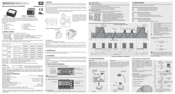 3. MONTAŻ PL HOJA TÉCNICA 1400H176 Edición 02 Sterownik należy instalować w miejscu zabezpieczonym przed wpływem wibracji, wody oraz powodujących korozję gazów, w którym temperatura otoczenia nie przekracza wartości podanych w specyfikacjach technicznych. W celu zapewnienia odpowiedniego działania zabezpieczenia IP65 w przypadku sterowników montowanych na panelu, pomiędzy urządzeniem a obwodem wycięcia w panelu, w którym chcemy je zainstalować, należy prawidłowo zamontować uszczelkę. Aby zapewnić prawidłowe odczyty, czujnik należy zainstalować w miejscu pozbawionym wpływu termicznego z innych źródeł niż to, którego temperatura ma być mierzona lub sterowana. Sterowniki elektroniczne AKOTIM 3.1 Montaż urządzeń na panelu: Montaż na szynie DIN 3 OTWÓR W PANELU 1 Aby zamocować urządzenie, należy umieścić złączki 1 na prowadnikach 2 według rysunku. Przesunąć złączki w kierunku wskazanym przez strzałkę. Po naciśnięciu klapki 3 złączki można przesuwać w kierunku przeciwnym do kierunku strzałki. 2 44 Stosowane do sterowania temperaturą w generatorach zimna oraz do wyświetlania informacji dotyczących historii działania, okresu chłodzenia, okresu rozmrażania oraz łącznego trwania cyklu. Bardzo przydatne dla celów automatycznej kontroli w dziedzinie Bezpieczeństwa żywienia, patrz punkt 7 dotyczący funkcji AKOTIM. 28,5 Montaż na panelu maks. 18 mm Spis treści: 1– 2– 3– 4– 5– 6– Modele i wersje Specyfikacje techniczne Montaż Konserwacja Ostrzeżenia Funkcje panelu przedniego tFd 61,5 1 Przekaźnik Rozmrażanie 1 przez zatrzymanie kompresora L3 ±20% 120V~+8% - 12% AKOTIM-14 AKOTIM-17 Montaż na szynie DIN AKOTIM-21 AKOTIM-24 AKOTIM-27 L3 FR L3 FR L4 L1 tHP L2 3.3 Podłączenie: AKOTIM-15 AKOTIM-18 Montaż na szynie DIN AKOTIM-22 AKOTIM-25 AKOTIM-28 Powierzchnię urządzeń należy czyścić miękką szmatką namoczoną w wodzie z mydłem. Nie stosować detergentów ściernych, benzyny, alkoholu ani rozpuszczalników. 3 Przekaźniki Kompresor + 1+2+3 rozmrażanie + wentylatory Montaż na panelu AKOTIM-13 AKOTIM-16 AKOTIM-19 AKOTIM-29 A R T E B oznacza wersję z dodatkowym przekaźnikiem 4 ALARM do sterowania alarmami. oznacza wersję z zegarem czasu rzeczywistego. oznacza wersję z wejściem dla trzeciego czujnika temperatury. oznacza wersję z wejściem cyfrowym. oznacza wersję z brzęczykiem wewnętrznego alarmu akustycznego. AKOTIM-12ARTEB oznacza model AKOTIM-12 w wersji z zegarem czasu rzeczywistego i brzęczykiem wewnętrznego alarmu akustycznego. oznacza model AKOTIM-12 w wersji z wszystkimi pięcioma funkcjami. UWAGA: Jeśli po numerze modelu występuje oznaczenie /**, z jednym lub dwoma znakami alfanumerycznymi, oznacza to «ze specjalnym oprogramowaniem». W takim przypadku, oprócz niniejszej ogólnej instrukcji obsługi, należy przestrzegać również dołączonych szczegółowych instrukcji obsługi zawierających dodatkowe informacje dla każdego urządzenia. 2. SPECYFIKACJE TECHNICZNE Zakres temperatury: .................................................................... (od -58ºF do 211ºF) od -50ºC do 99ºC Wejścia dla czujników NTC: ............................................................................................. AKO-149XX Łączna precyzja (czujnik + sterownik): .......................................................................................... ±1ºC Przekaźnik 1 COOL: ........................................................................... 16(4) A*, 250 V, cosφ = 1, SPST Przekaźnik 2 DEF lub R2: .........................................................................8 A*, 250 V, cosφ = 1, SPDT Przekaźnik 3 FAN: ...................................................................................5A*, 250 V, cosφ = 1, SPST Przekaźnik 4 ALARM: .............................................................................. 5 A*, 250 V, cosφ = 1, SPST Maksymalna moc wejściowa (wersje 12 V): .................................................................................. 3 V A Maksymalna moc wejściowa (wersje 230 V i 120 V): ...................................................................... 5 V A Zakres roboczych temperatur otoczenia: ........................................................................ od 5ºC do 40ºC Zakres temperatur przechowywania: ........................................................................... od -30ºC do 70ºC Kategoria instalacji ......................................................................................... II według normy CEI 664 3-cyfrowy wyświetlacz i opcjonalnie punkt dziesiętny, programowalny Podwójna izolacja pomiędzy obwodem zasilającym, wtórnym i wyjściami przekaźników. * Natężenie podane dla każdego przekaźnika to jego indywidualne maksimum. W przypadku podłączenia więcej niż jednego przekaźnika suma natężeń (COOL + DEF + FAN) nie powinna przekraczać 17,5 A (EN61010) lub 13 A (EN60730). 1 2 tLP 3 tc2 t od PR Stosowanie urządzenia niezgodnie z instrukcjami producenta powoduje unieważnienie kwalifikacji bezpieczeństwa. Aby zapewnić prawidłowe działanie urządzenia, należy stosować wyłącznie sondy NTC dostarczane przez firmę AKO. W zakresie temperatur od -40°C do +20°C, kiedy sonda podłączona jest przy pomocy przewodu o minimalnym przekroju 0,5 mm2 o długości do 1000 m, wartość odchylenia będzie wynosić poniżej 0,25°C (Przewód przedłużający czujnika: AKO-15586) 6. FUNKCJE PANELU PRZEDNIEGO 6.1 Modele przeznaczone do montażu na panelu: ºC Dioda LED ºF Klawisz strzałki w górę ºF Dioda LED COOL Dioda LED FAN Dioda LED DEF Dioda LED ALARM PRG SET Hd Pełny Cykl L4 PR Hd 8. TRANSFER PARAMETRÓW AKO-14918 Serwer stacjonarny, zasilany przy pomocy AKO-80018, 230/12 V. Umożliwia transfer parametrów zarejestrowanych uprzednio przez serwer AKO-14918, do innych sterowników przy pomocy złącza komunikacyjnego, bez potrzeby ich zasilania. Przenośny serwer, 