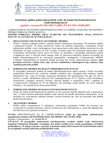 Instrukcji poboru próbek wody - Miejskie Przedsiębiorstwo